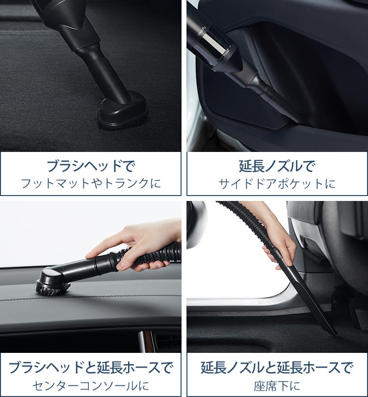 車内掃除に活用できる、4つのパーツをプレゼント!組み合わせ次第で、あらゆる場所にお使いいただけます。