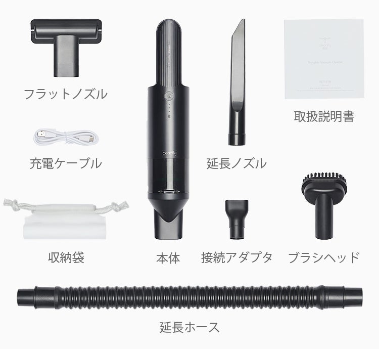 「cleanfly」なら、吸引力は驚異の16800Pa!片手で持ち運べるハンディクリーナーの中で、圧倒的な吸引力を誇ります。その吸引力は家庭用掃除機にも引けを取りません。