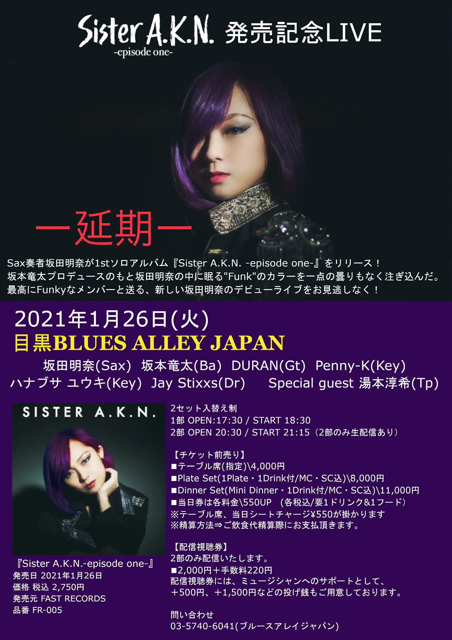 『Sister A.K.N. -episode one-』の発売記念ライブは1回しか出来ないので、大事にしたいという思いから、延期と判断いたしました。