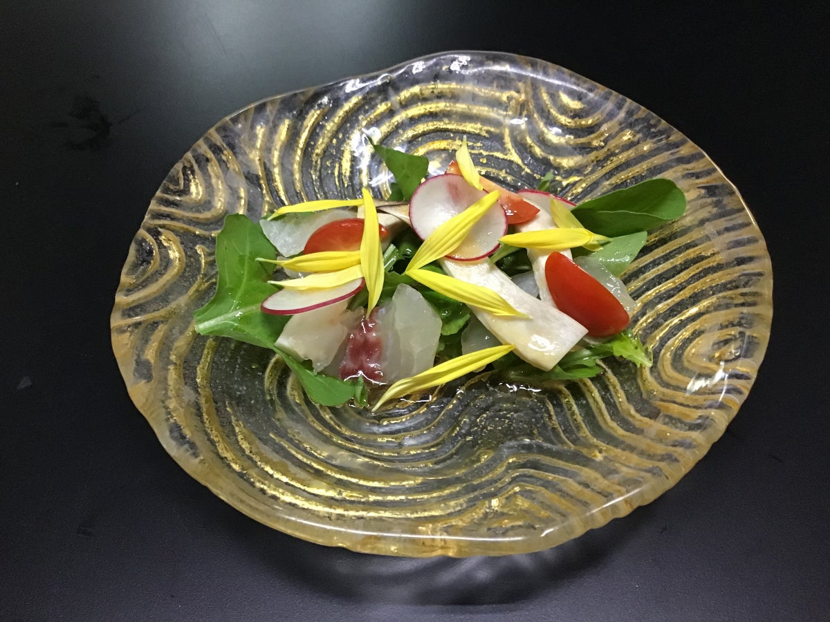(プチトマト、ラディッシュ、ルッコラ、菊花)