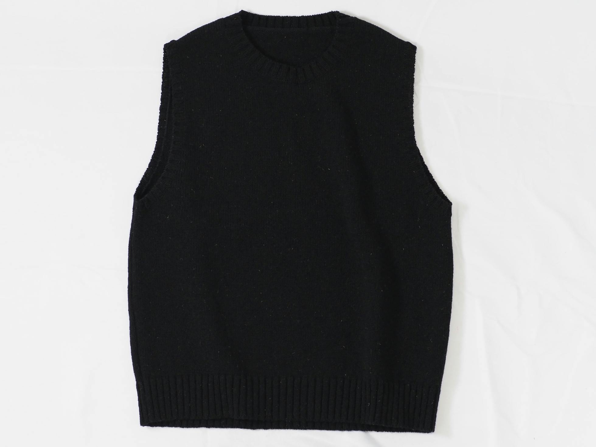 ① 21,000円 峯村サフォーク ニットベスト(生成り・ブラックの2色・各3サイズ)