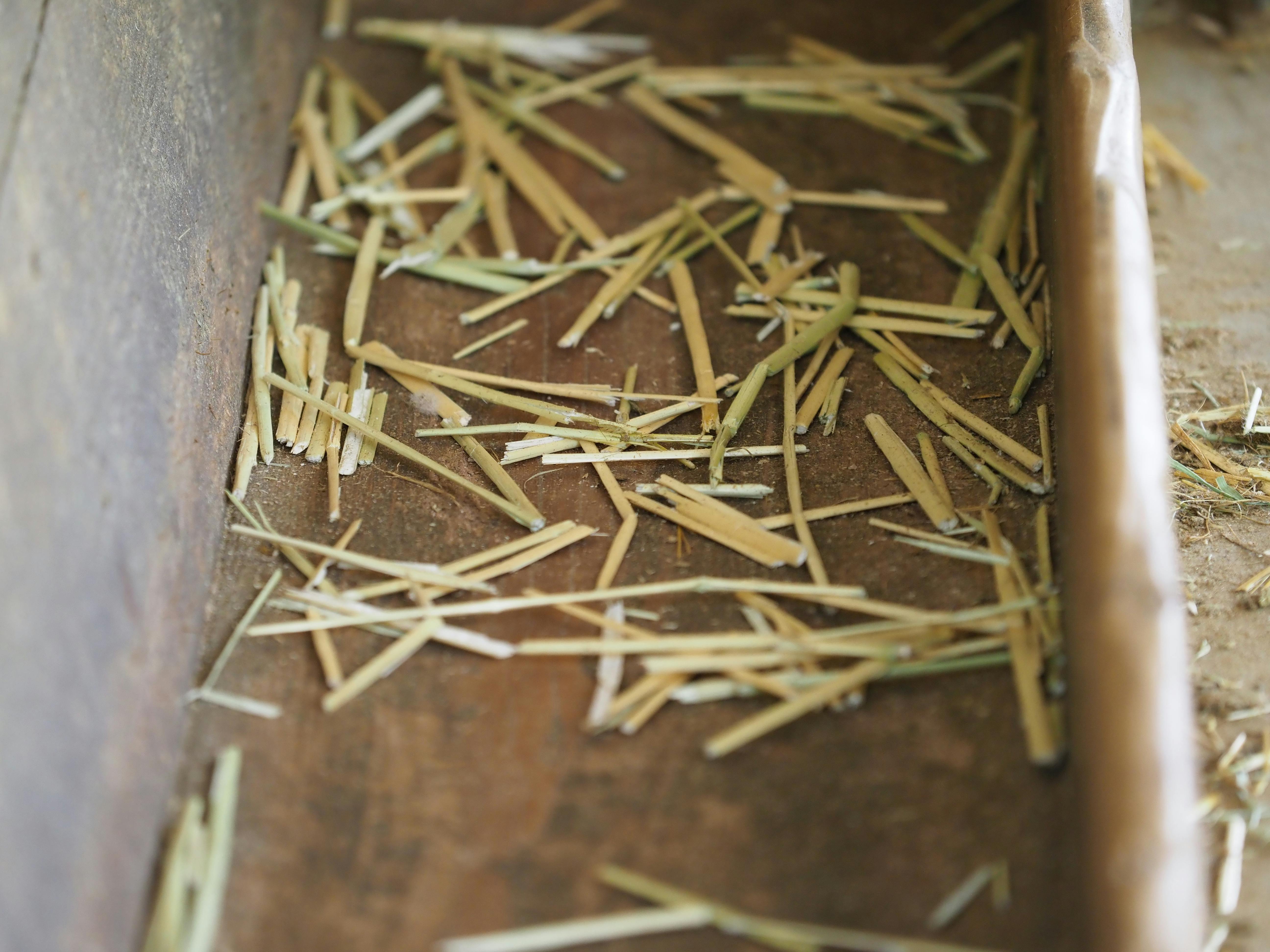 餌は干し草を中心に、麦のふすま、ビール粕、信州の名産「西山大豆」のおから、