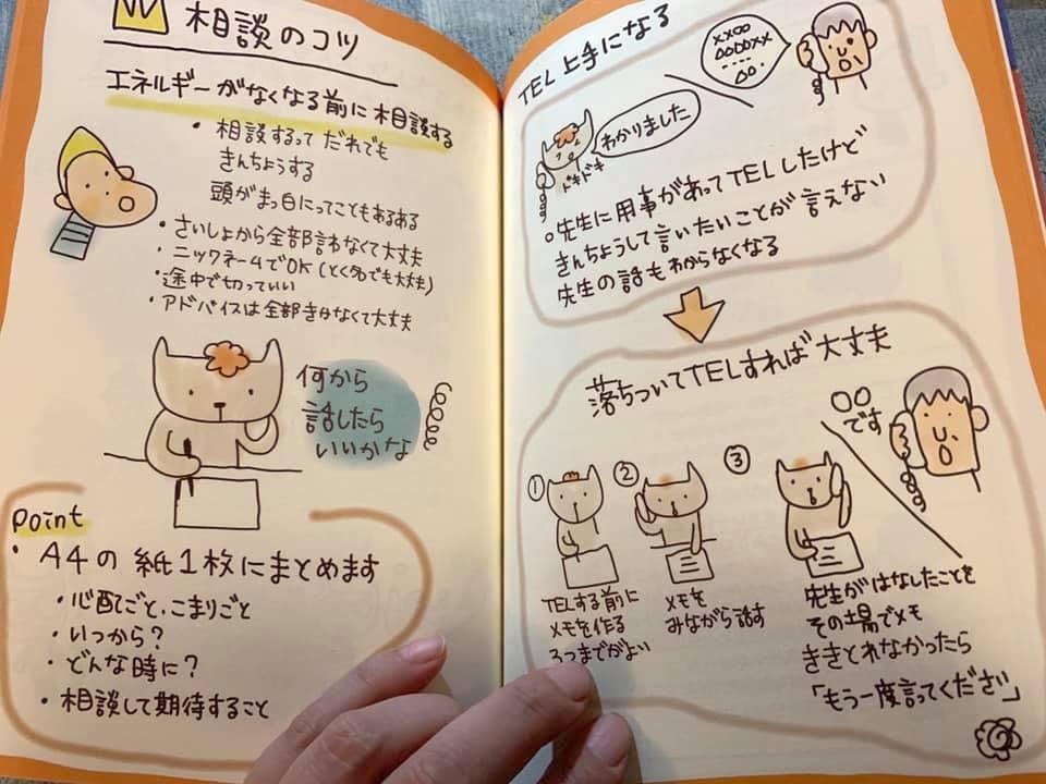 『生きる冒険地図』と同じ仕様、同じ全編手描きの本ですが、『ゆるっとこそだて応援ブック』は、意識して文章のボリュームを減らして、余白をしっかりとりました。しんどいときにも読んでもらえるように。