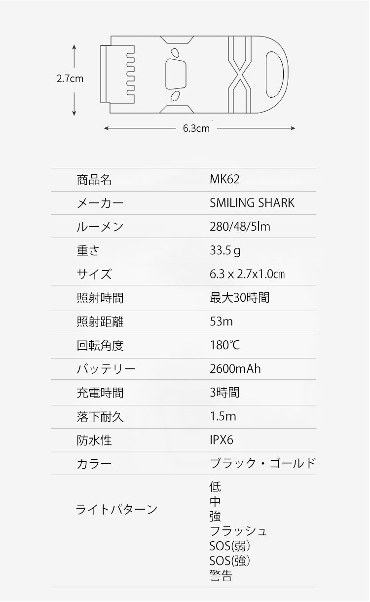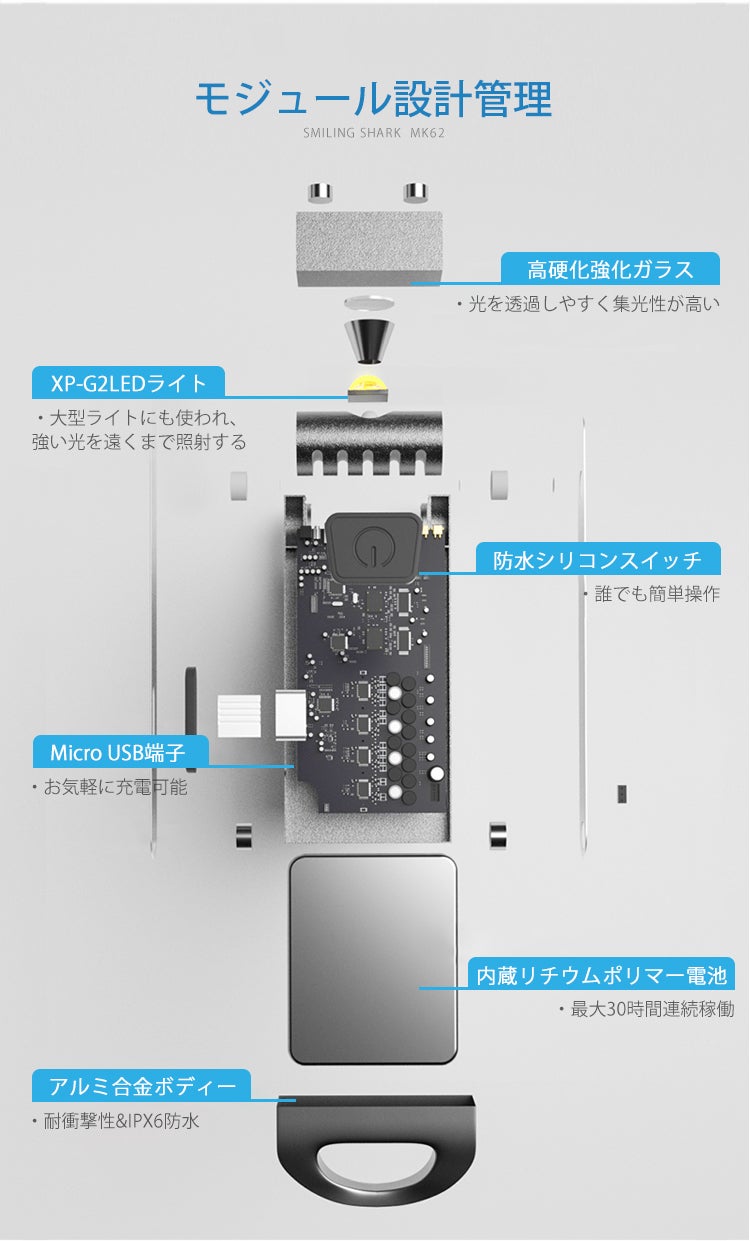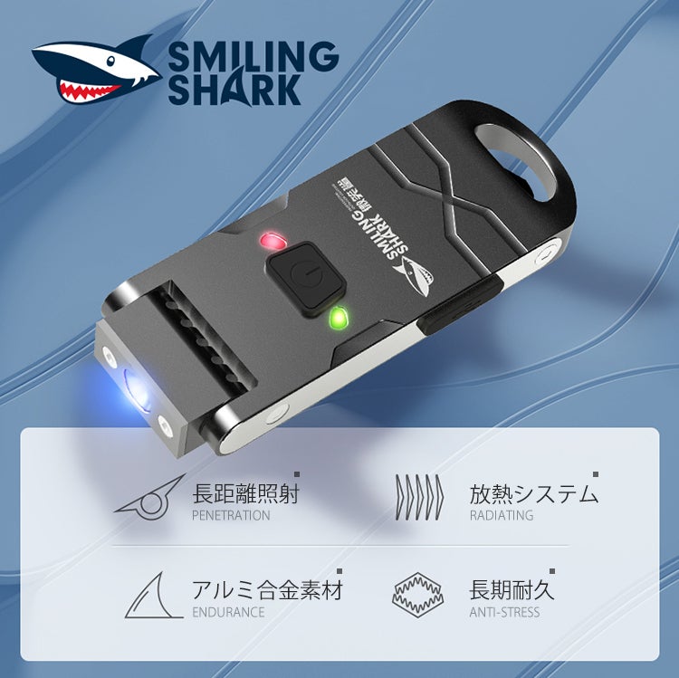 夜間のランニング・ウォーキング・釣り・サイクリングなど、アウトドアをおもいっきり楽しむコンパクトなスマートツール「SMILING SHARK MK62」。