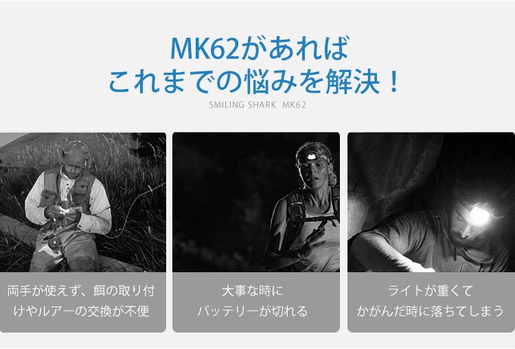 手持ちライトだと片手が塞がって動きにくい。固定ライトでは影が出来る。ヘッドランプをつけるのは見た目にちょっと抵抗が...そんなライトの不便さを「SMILING SHARK MK62」がスタイリッシュに解決します!