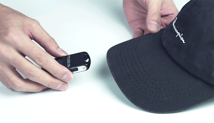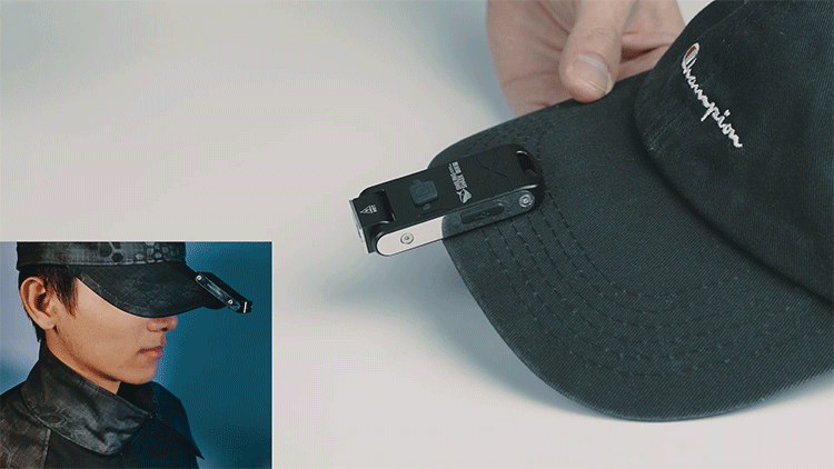 付属のクリップで帽子にセットすればハンズフリーで使えます。