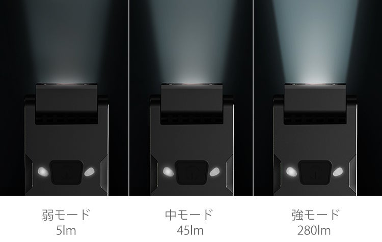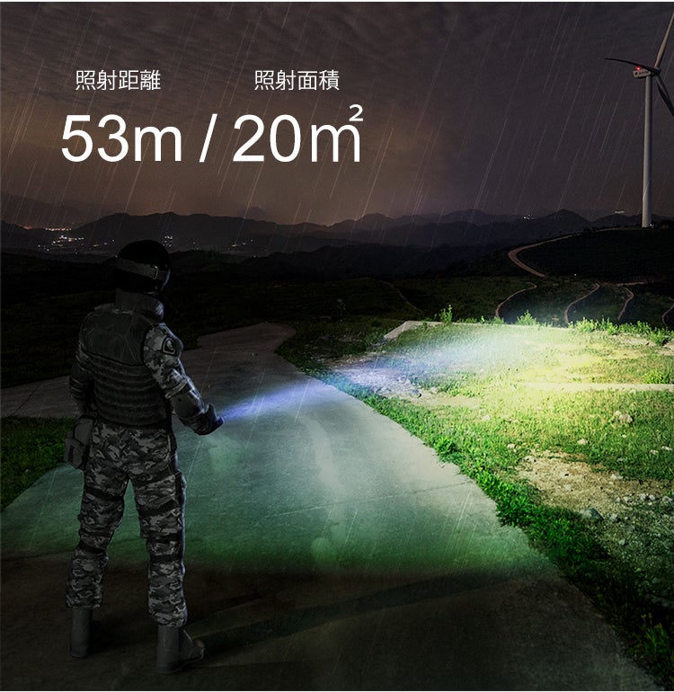 最大280lmの強力ライトは53m先まで届くので、手持ちのライトとしても十分に遠距離を照らせます。