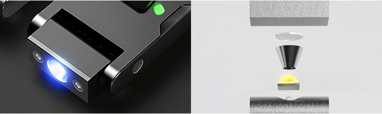 サメからインスピレーションを得てて設計された熱を効率よく分散し放熱するデザイン。従来熱を持ちがちな小型のLEDライトと比較しても安全に使用できます。