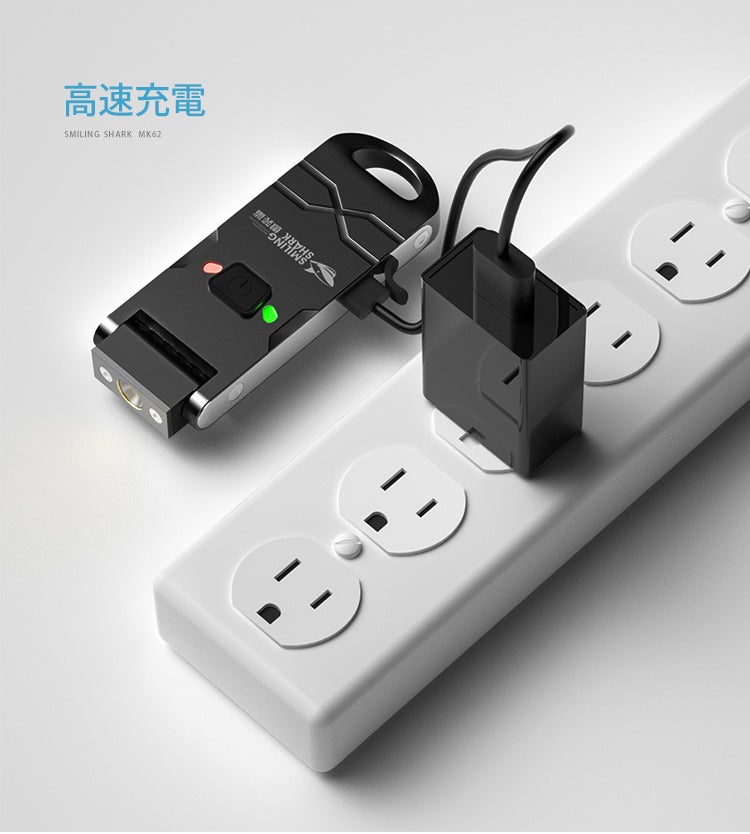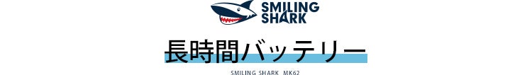 「SMILING SHARK MK62」はMicro USB端子がついており、コンセント、USBからの充電が可能です。バッテリー0からの状態でも3時間でフル充電となります。