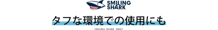 「SMILING SHARK MK62」は防水性能IPX6。雨に濡れたり、じゃぶじゃぶ洗ったり、一時的に水没しても内部に浸水することがありません。
