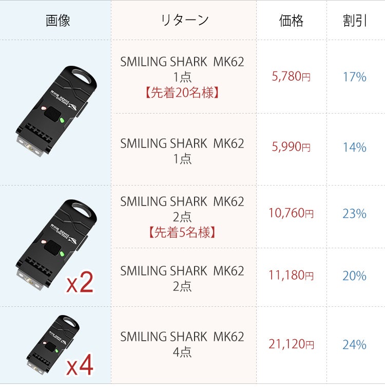 ミニライト「SMILING SHARK MK62」をレビューしてみたいというメディア様、インフルエンサー様を募集しています♪