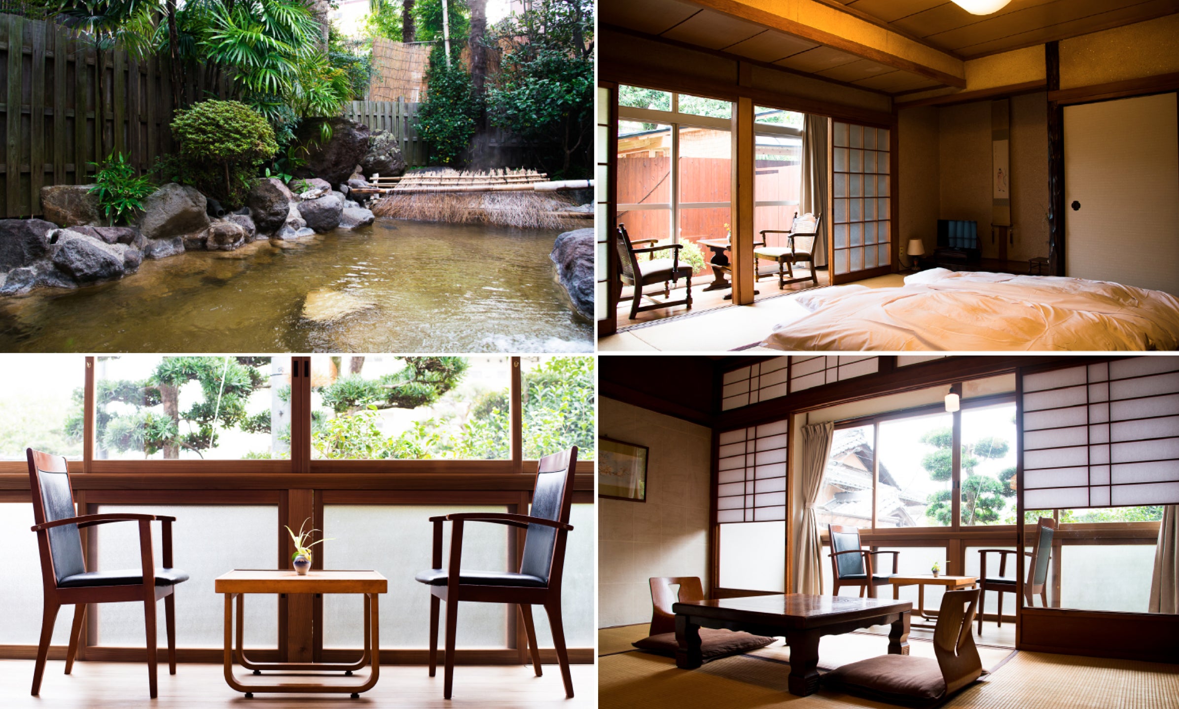 山田別荘の特徴としましては、築90年を超える日本家屋が醸し出すゆったりとした雰囲気や、お客様からご好評頂いている内湯と外湯です。天気がいい日は、縁側で読書をされる方や、お食事を取られる方もいらっしゃいます。旅館のようなきっちりとした感じではなく、田舎のお婆ちゃんの家を訪れたような気持ちで楽しんでいただける空間作りを心がけております。