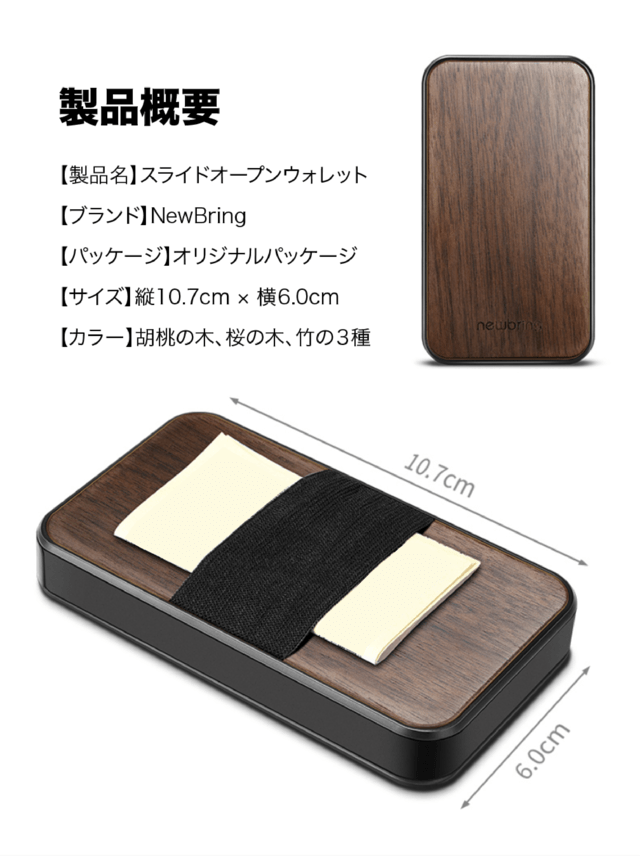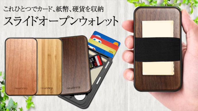 天然の木材を使用したデザインの「スライドオープンウォレット」は、今回3種類をご用意しております!