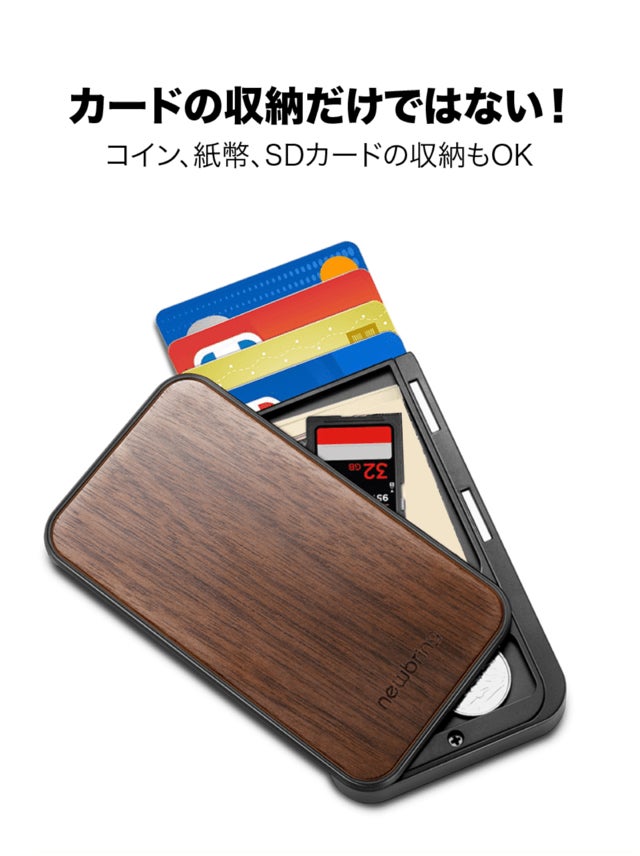 ④ カードのみならずコイン、紙幣、SDカードなど収納!