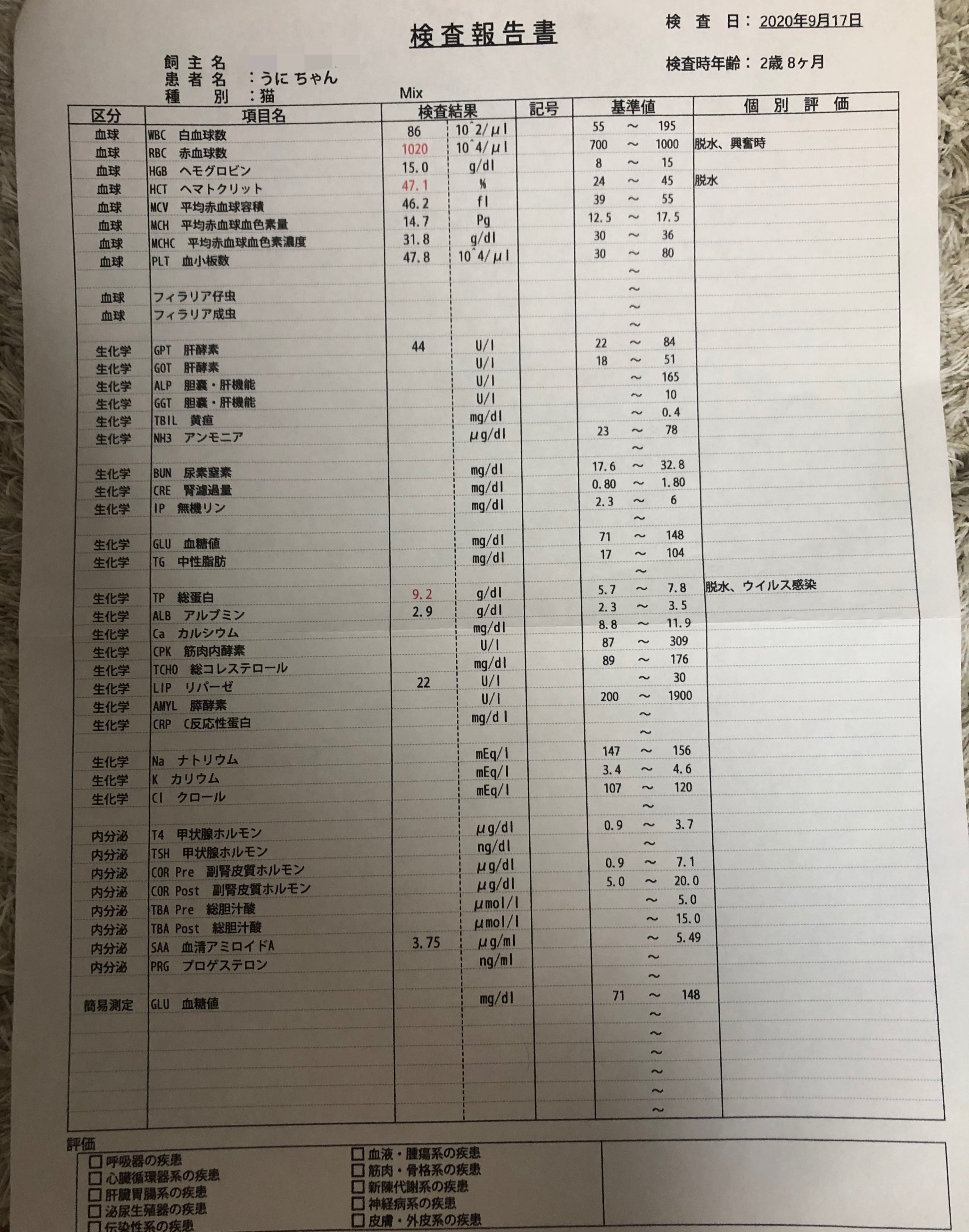総蛋白以外の数値は下がっているので薬は効いているとのことでした( ´ω` )