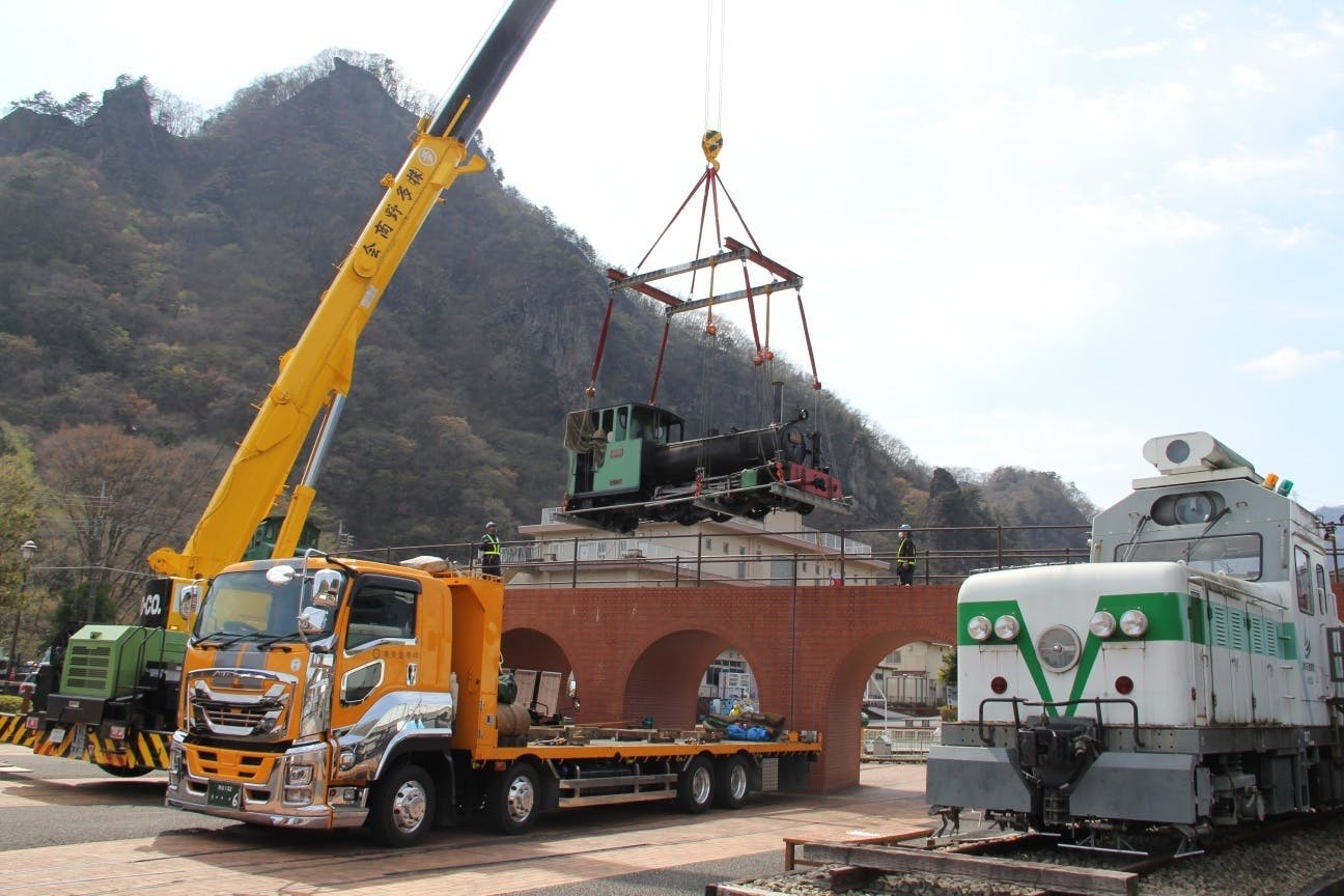 さっそく4月6日(火)にSLあぷとくんを工場に搬出する作業が行われ、修理へ出発いたしました。修理の進捗状況等はこちらで報告させていただきますので、引き続きよろしくお願いいたします。