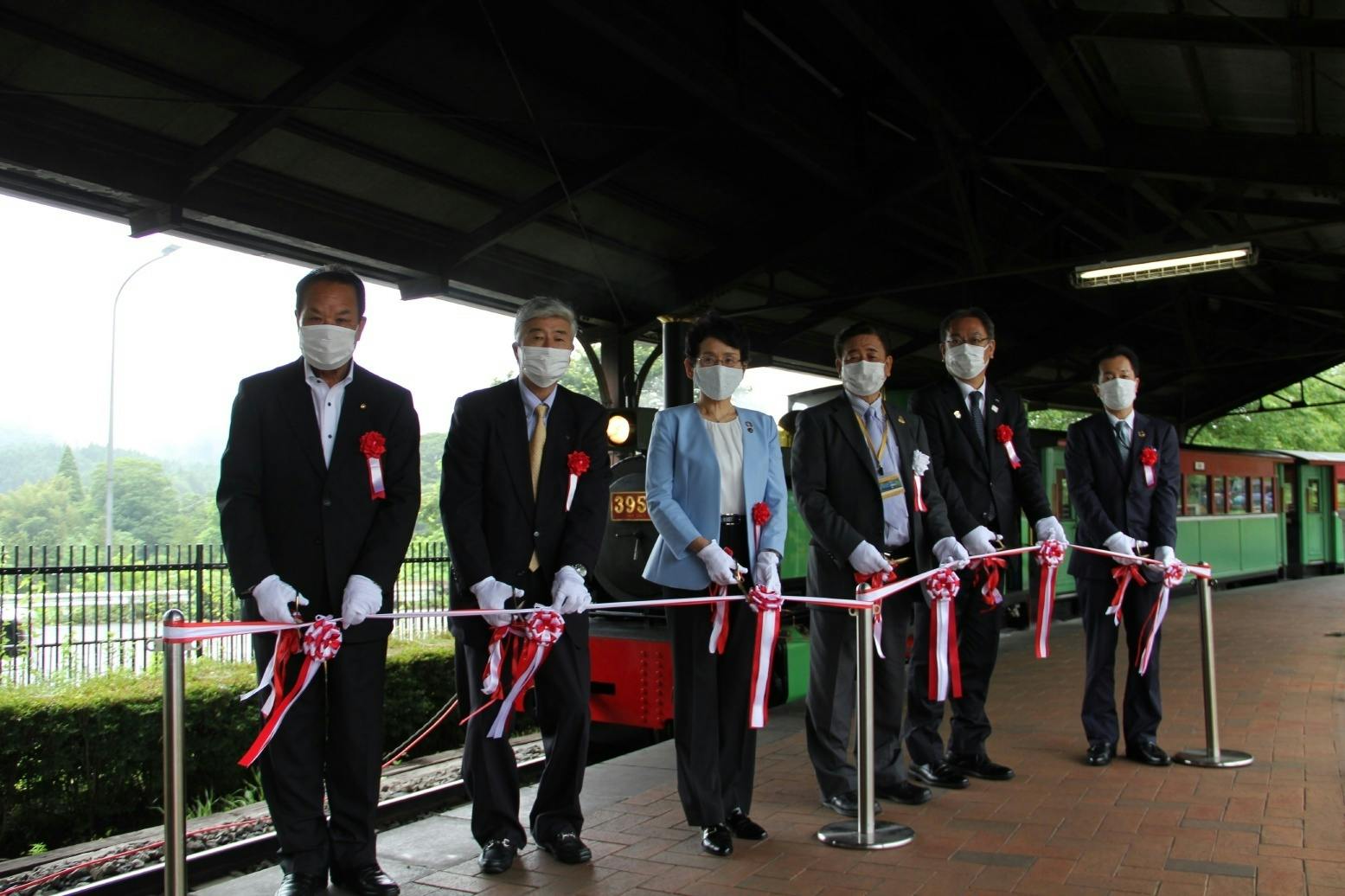 2021/07/07 10:017/4(日)にSLあぷとくんの出発式が行われました。皆様のご協力により、ついに営業運転を再開することができました。深く感謝申し上げます。当日は雨が降る中でしたが、多くのお客様にご来園いただきご乗車いただきました。 出発式は当財団理事長・ご来賓の方々にご挨拶いただいた後テープカットが行われました。ファンファーレや出発時には、高崎グリーンクレストの皆様の生演奏で盛り上げていただきました。 土日祝日と、7月22日(木)~26日(月)・7月28日(水)~8月15日(日)は毎日に運行していますのでご来園の際はぜひご乗車ください! 今後とも碓氷峠鉄道文化むらをよろしくお願いいたします。 もっと見る