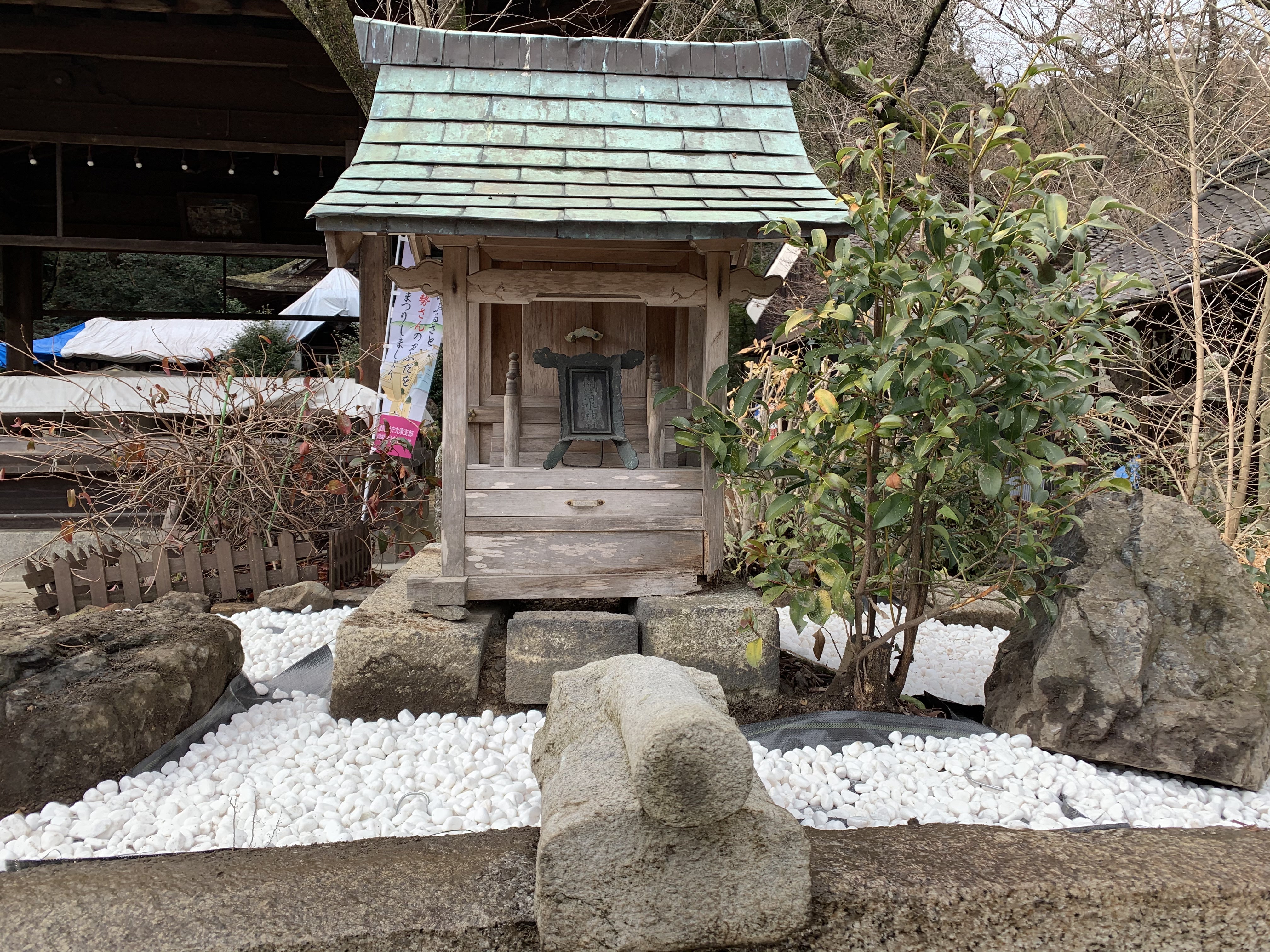 2021/01/20 16:141月16日に関清水社の上の部分の掃除と整理に行きました。この日は、1時過ぎに向かう予定でしたが、11時過ぎから結構キツく雨が降り出し、どうなることやら…と思っていました。雨は降ったり止んだりとはっきりしない状況でしたが、3時くらいには止むような予報になっていました。1時半ごろに自宅を出発して、小雨の降る中、作業を始めました。そんなに気になる感じではなく、少ししたら雨は止み、木の根起こしをしました。神様からのサポートとは、こうゆう形でもたらされるのだと実感しました!雨が結構降ったおかげで、土が柔らかくなり、時間が掛かるだろうと思っていた数本の木の根は、思いのほか楽に掘り起こすことができました。関清水社の上には小さな木々、周りには大きな木が植えられており、その根が石組を歪ませ、ズレて隙間が空き、危険な状態になっていました。*以前の関清水社のお姿*上の部分は、砂をかき出し石組のズレを直しました。地面が綺麗になった上に、防草シートを敷き固定をします。そして、大理石の白い玉砂利を敷き詰めました。が、量が足らず、この日はまだ未完成のまま帰りました。20日に追加購入した玉砂利を持参して、関蝉丸神社 下社に行くと、宮司にお願いしていた新しいお社が設置されていました!多分、18日の大安の日に設置してくださったのではないかと思います。まだ、魂を入れていただいていない状態とは思いますが、皆様のおかげで立派なお社に変わりました。本当にありがとうございました。2月1日、13時から関蝉丸神社 下社で「節分際」が行われます。その時に、関清水社のお披露目をしていただく運びになっています。後は、春になり無事井戸に水が溜まっていることを願うばかりです。コロナの影響で、皆様大変不自由な状況を強いられていることと思います。皆様、どうかお体ご自愛いただき、またコロナが収束し、落ち付きましたら、ぜひ足をお運びいただけますとありがたく思います。 もっと見る