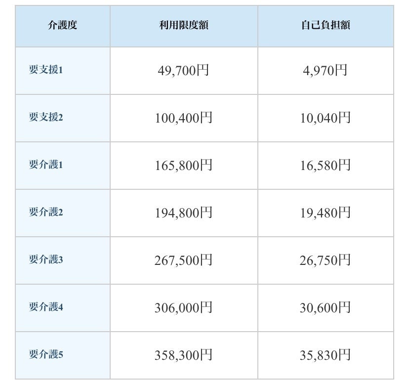以上のようなサービスを受けていく訳ですが、介護保険制度にはそれぞれの介護度によって利用限度額が設けられています。