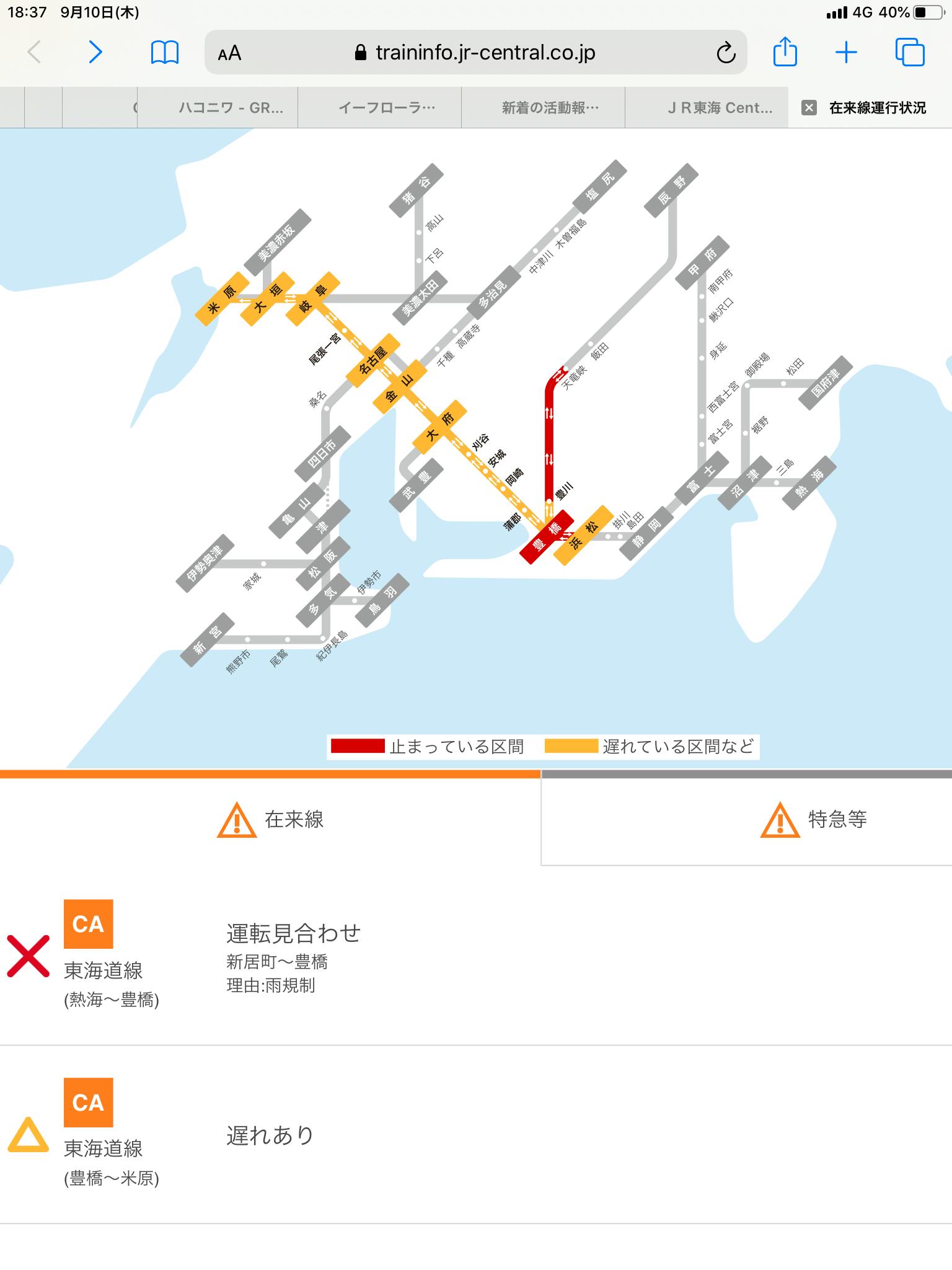18時23分 浜松駅~豊橋駅間での大雨のため、運転を見合せています。
