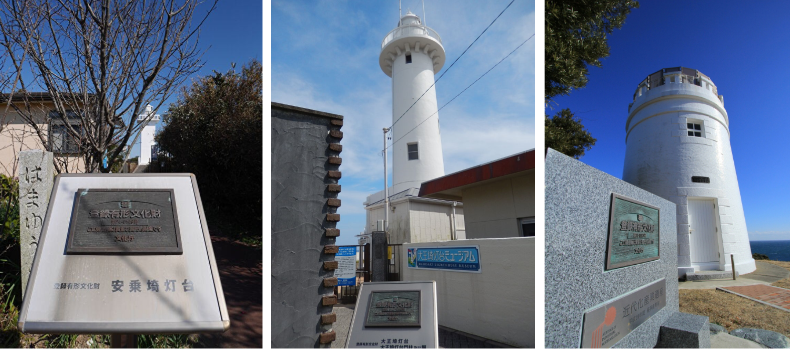 右:安乗埼灯台(志摩市) 中:大王埼灯台(志摩市) 右:菅島灯台(鳥羽市)
