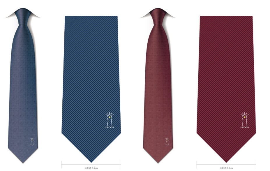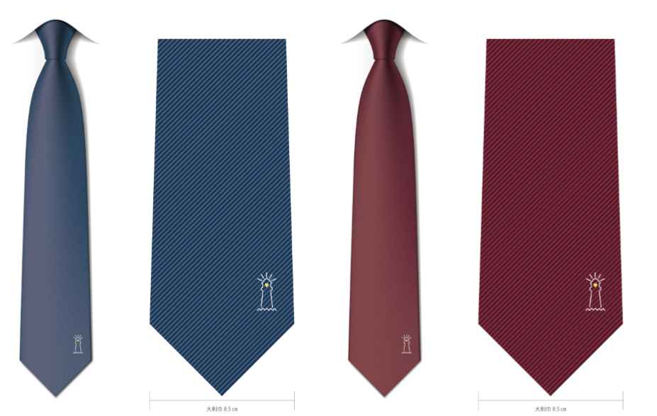 新しいデザインのネクタイを作っています。青か赤かのご希望をお知らせください