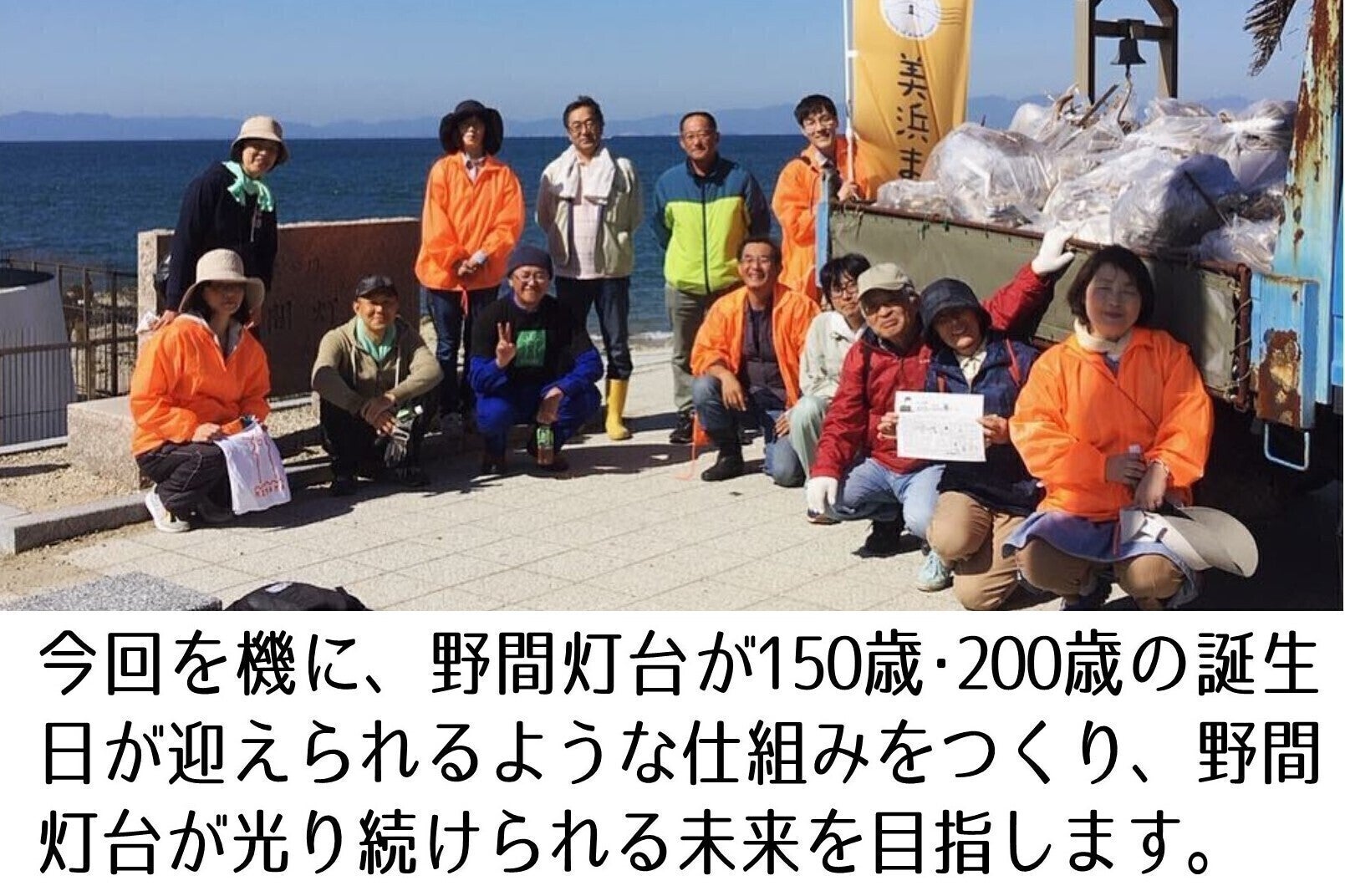 今回の取り組みを実績として、最終的には寄付金という形で有料一般開放を実現させたいと思っています。今回はクラウドファンディングで資金を集めさせていただきますが、未来永劫できるわけではありません。今後の管理費・修繕費等を捻出するためには、有料での一般開放が必須と考えます。 町のシンボル野間灯台を守っていくためには、住民の行動が必要です。今回はその第一歩です。100歳の誕生日はよい機会です。ここをきっかけにして、持続可能な野間灯台、そして持続可能なふるさとを目指して行動を起こしましょう。