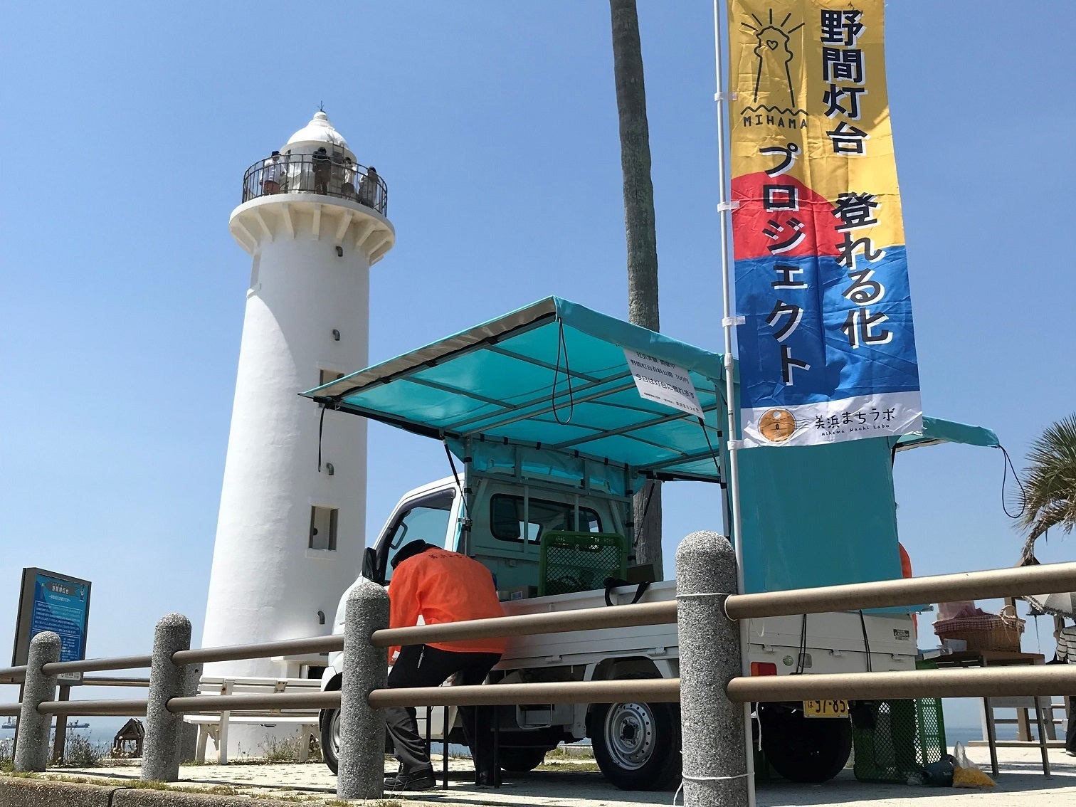 美浜まちラボでは、中間支援・空き家対策・特産品開発・放置竹林の解消など様々な事業を行ってきました。その中の一つが「野間灯台登れる化プロジェクト」です。美浜町にある野間灯台(正式名称は野間埼灯台)は非公開の灯台で、普段は中に入ることができません。年に1・2回、海上保安庁と美浜町による一般公開が行われていて、登ることができるのはその日だけです。全国には公益社団法人燈光会が運営する「登れる灯台」が16基あり、そこでは300円の参観寄付金を支払うと灯台に登ることができます。野間灯台をそうした「登れる灯台」にしようというのが、このプロジェクトの趣旨です。