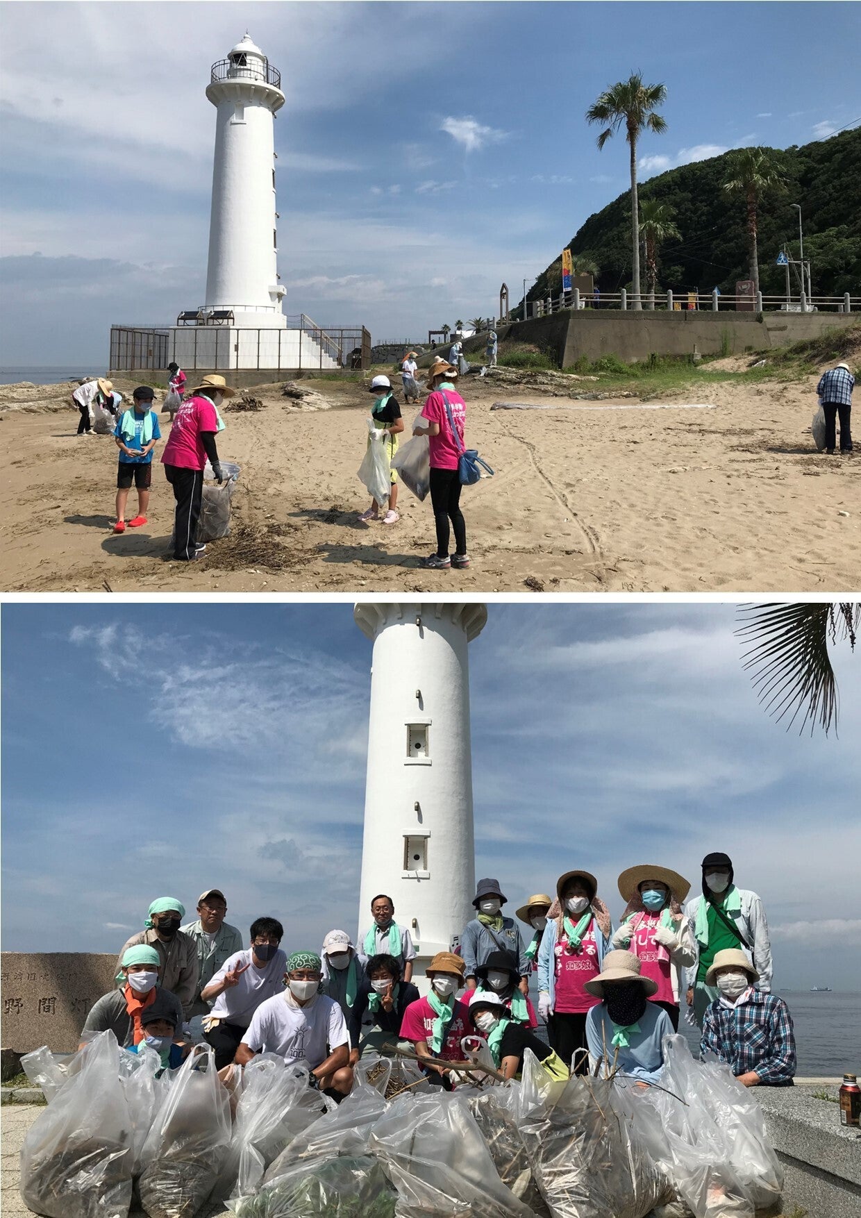 7月10日(土)に海岸清掃を行いました。旅館組合女将会のみなさんをはじめ、地域の方々にお手伝いいただき、本格的な夏を前に灯台前の海岸がきれいになりました。