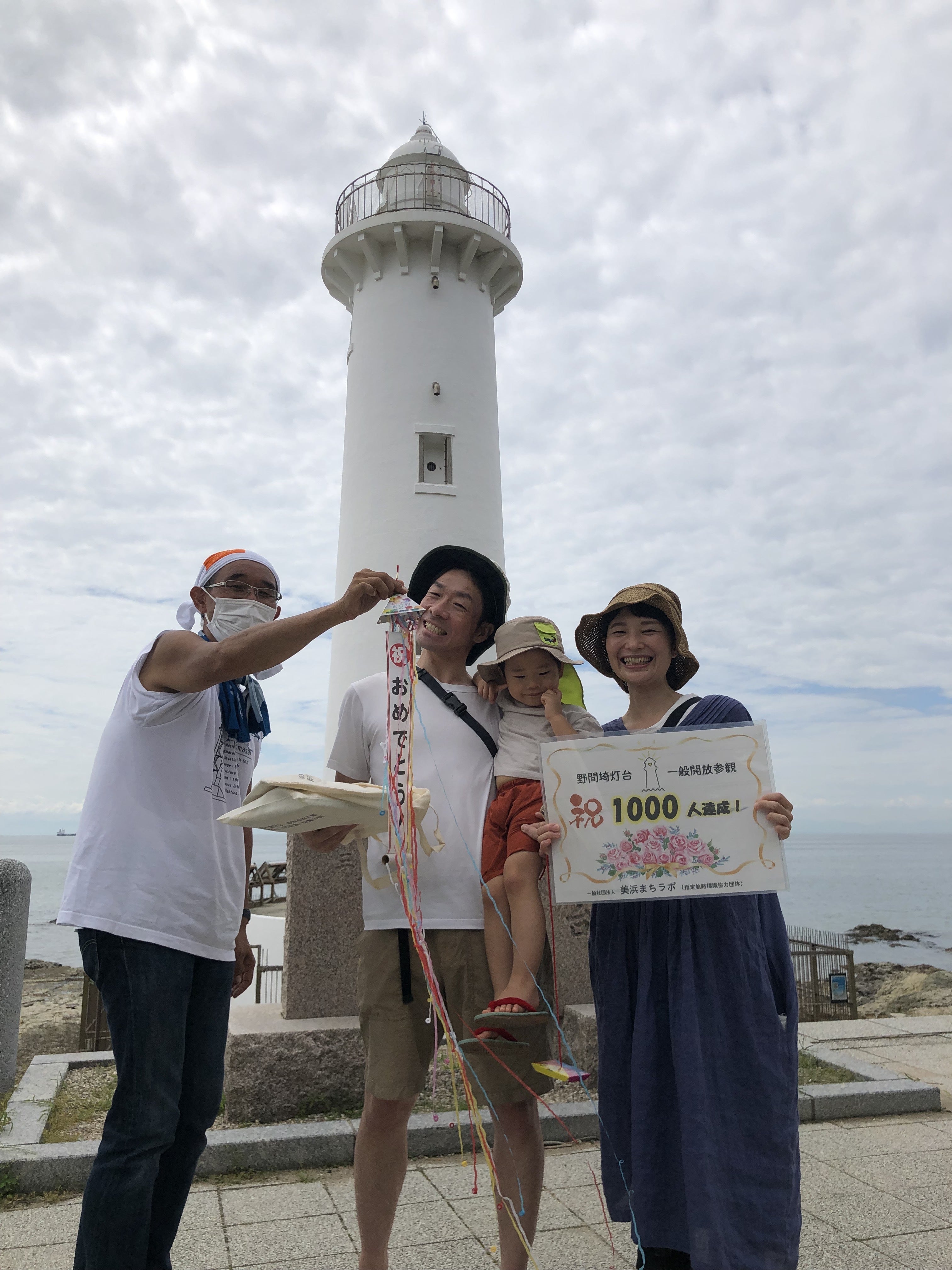 1000人目は、名古屋在住の広瀨さんご一家です。「今まで何度も灯台の前を通ったことがあったけれど、ここに登ったのは初めてです。よい思い出になりました」と話してくださいました。
