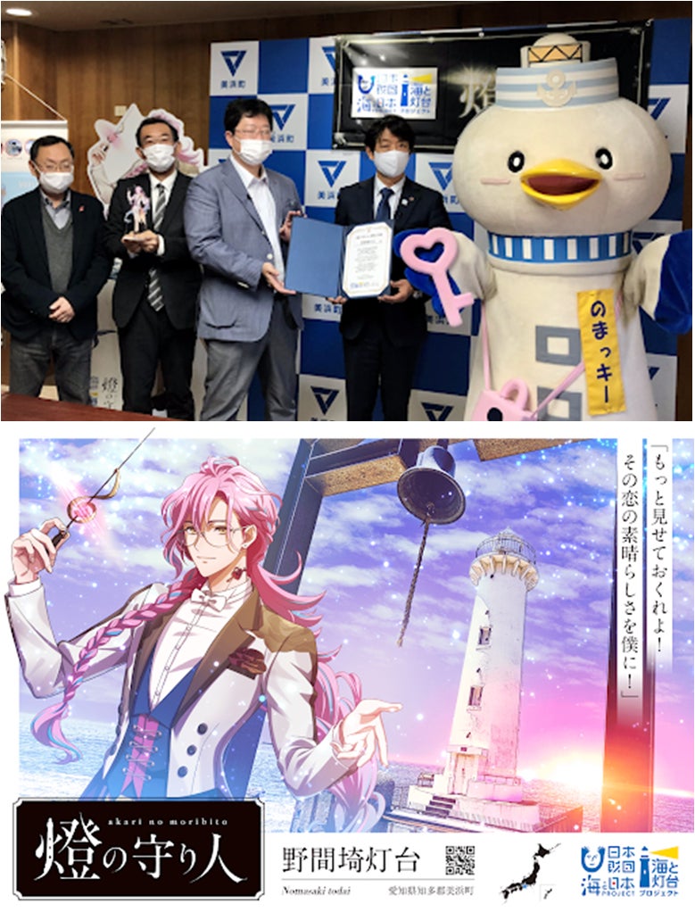 野間灯台を擬人化したキャラクターができました。燈の守り人とは以下のようなプロジェクトだそうです。「燈の守り人」プロジェクト『燈の守り人』は、日本全国の海岸線に建設されている灯台を擬人化したオリジナル・エンターテインメントです。灯台に自らの魂を捧げ、海の災厄「水禍」から日本を守ってきた灯台の化身・「燈の守り人」たちの物語で、灯台からみた日本の近代史など、灯台の多様な魅力を伝えていく大河ファンタジーです。日本における西洋式灯台の歴史は、約150年前に遡り、現在3,000基をこえる灯台が存在しますが、GPSやレーダーの普及に伴い、各地でその役目を終えつつあります。『燈の守り人』プロジェクトでは、各地の灯台の魅力をオリジナルストーリーでエンタメ化することにより、これまでの灯台ファンは勿論のこと、さらに広い層にその魅力を届け、灯台に足を運ぶ人を増やし、地域の海洋資源として、灯台に光を当てることを狙っています。https://toudai.uminohi.jp/houmon/post-4902/https://uminohi.jp/eventreport/cpr-2021-1119-1070/今後、①キャラクター制作・・・「燈の守り人」に登場する20灯台のキャラクター制作 ②漫画連載・・・縦読み漫画として週刊連載(漫画アプリ各社)③声劇Liveイベント・・・著名声優によるライブ朗読会イベント ④音声ドラマ・・・有名声優が登場する、オリジナル脚本による音声ドラマ ⑤音声ガイド・・・有名声優による各灯台の概要説明をする音声ガイド ⑥20市町村に、キャラクター贈呈の表敬訪問・・・市町村とのタイアップ展開 などの活動が展開されるようです。
