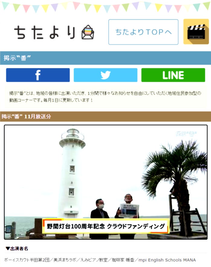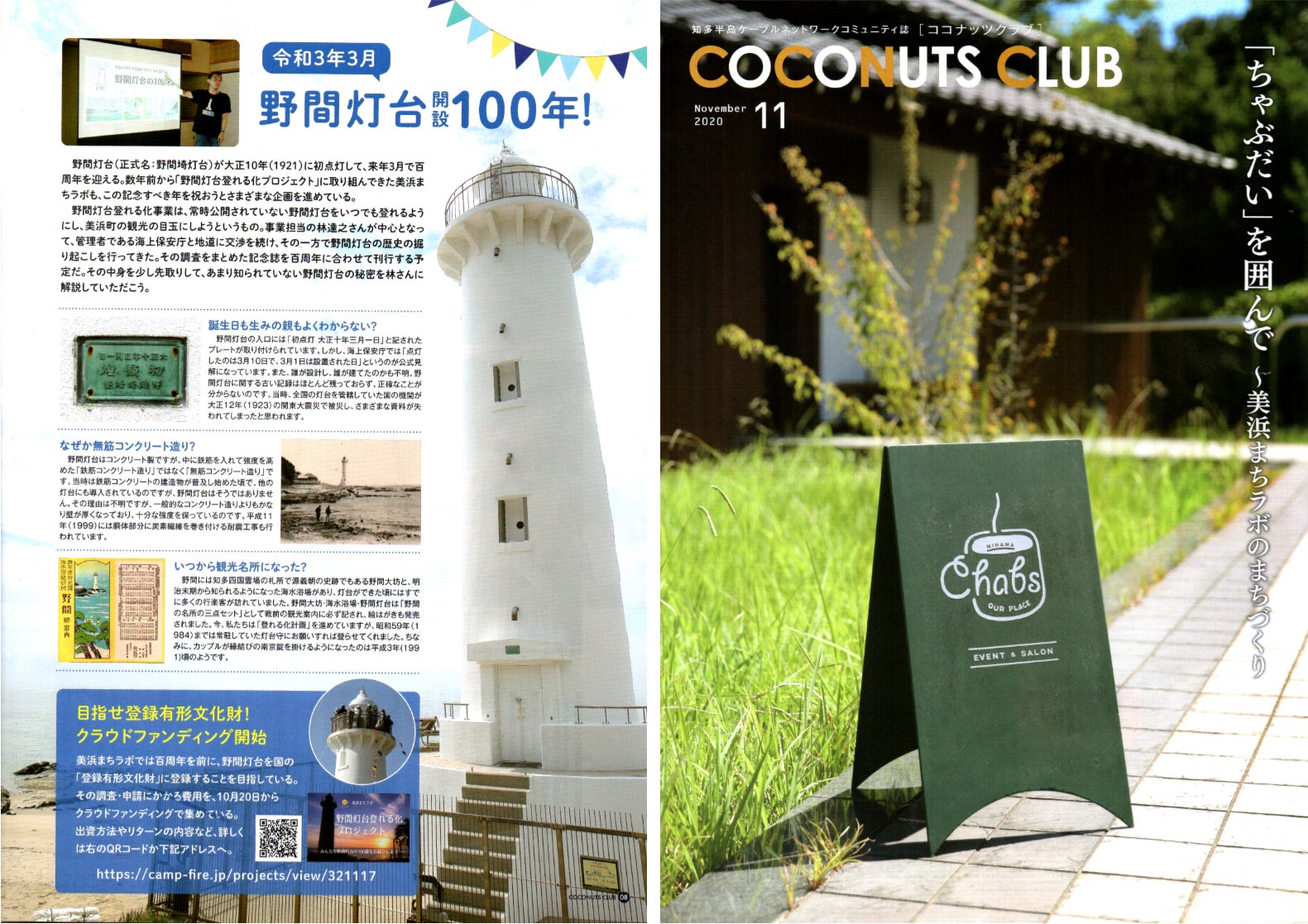 地域の情報紙「ココナッツクラブ」11月号に、まちラボの取り組みとして、野間灯台登れる化プロジェクトについて掲載されました。