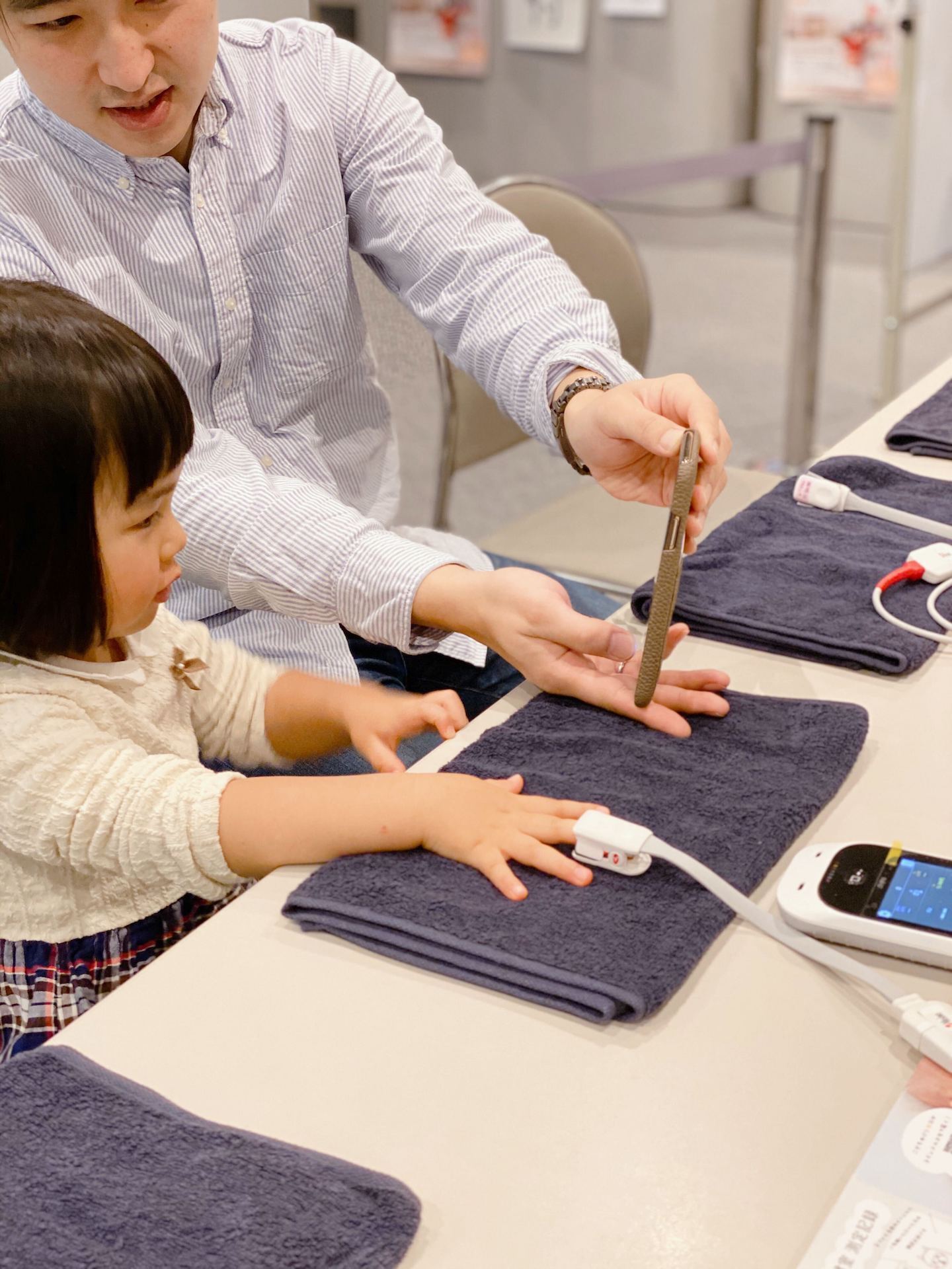 ①会場にお越しいただき、実際にこどもの貧血測定ができます
