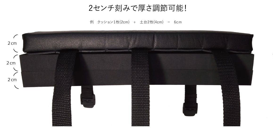 ※+2~6cmタイプ → 土台+4cm クッション部分+2cm 最大6cmUP