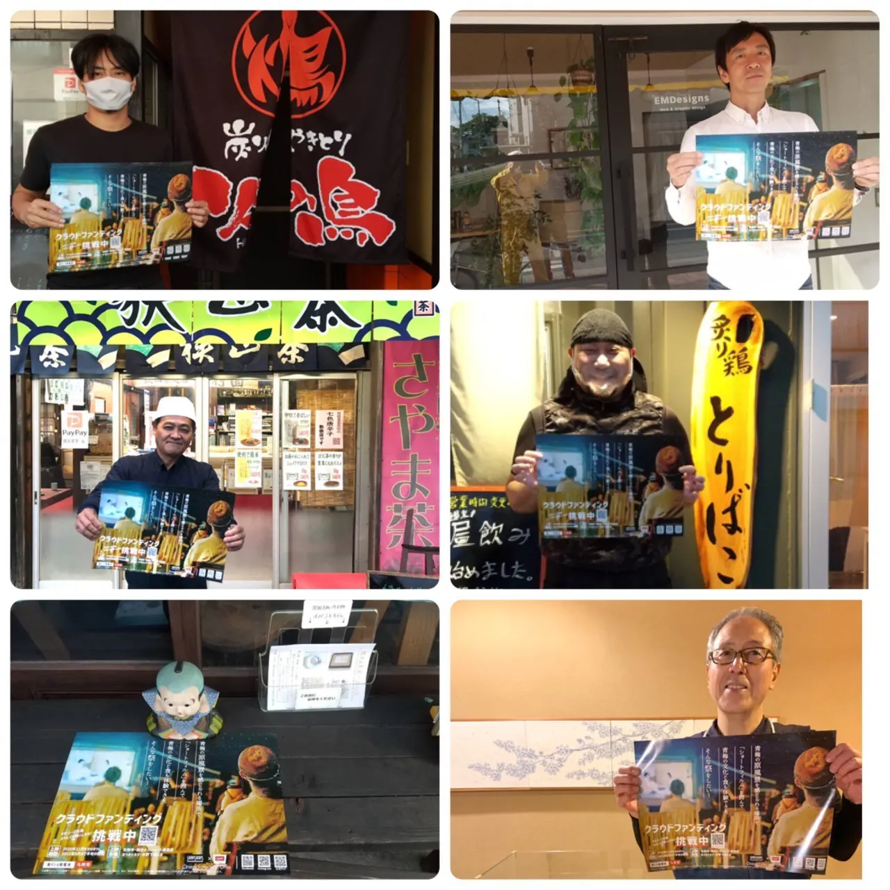 ④炭火やきとり 火の鳥青梅市内に焼き鳥、海鮮、ぎょうざと3店舗を展開する火の鳥さんから「ポスター貼りますよ!」って連絡をいただいて届けてきました。実はぼくは初対面。話をきいてみたらなにやら映画館をつくっちゃおうっていうプロジェクトが動いているとか?気になる方は火の鳥の社長さん、菊池さんfacebookをチェックデス!