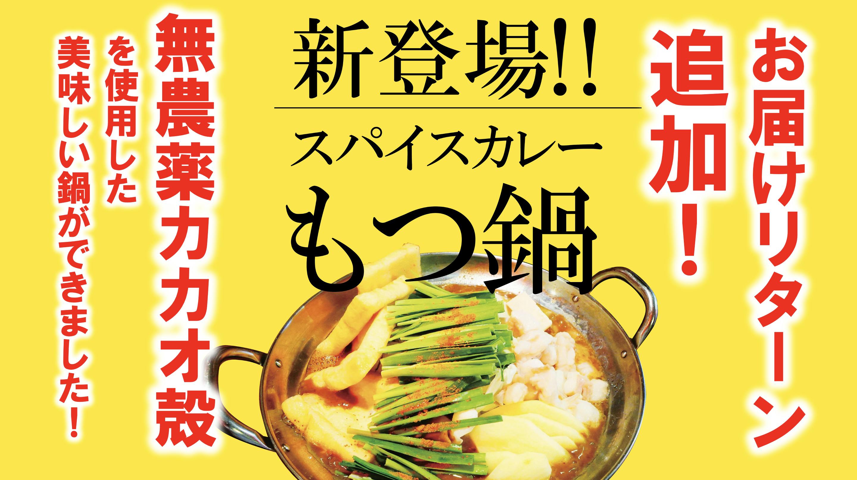 無農薬カカオ殻使用?!スパイスカレーもつ鍋!!