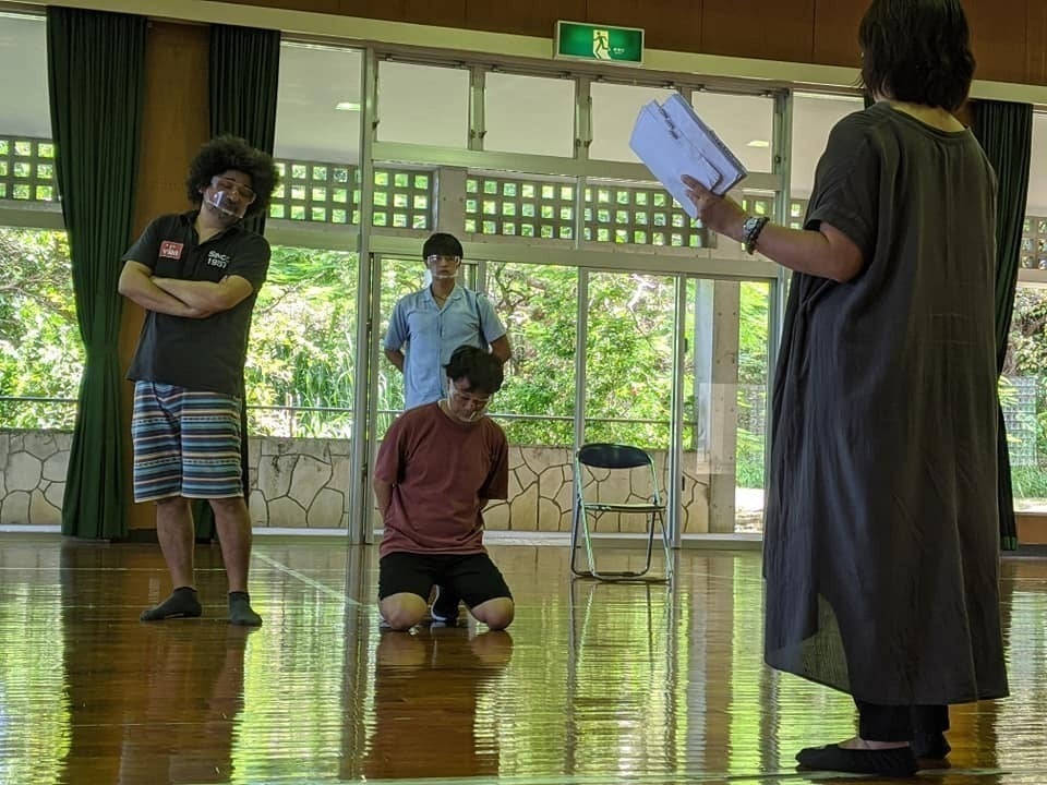 稽古では入室前のアルコール消毒、体温測定、稽古中にもフェイスシールドとゴーグルの着用、1時間ごとのアルコール消毒、換気と感染対策を徹底し、稽古開始から本番予定日の14日までひとりの感染者も出しませんでした。