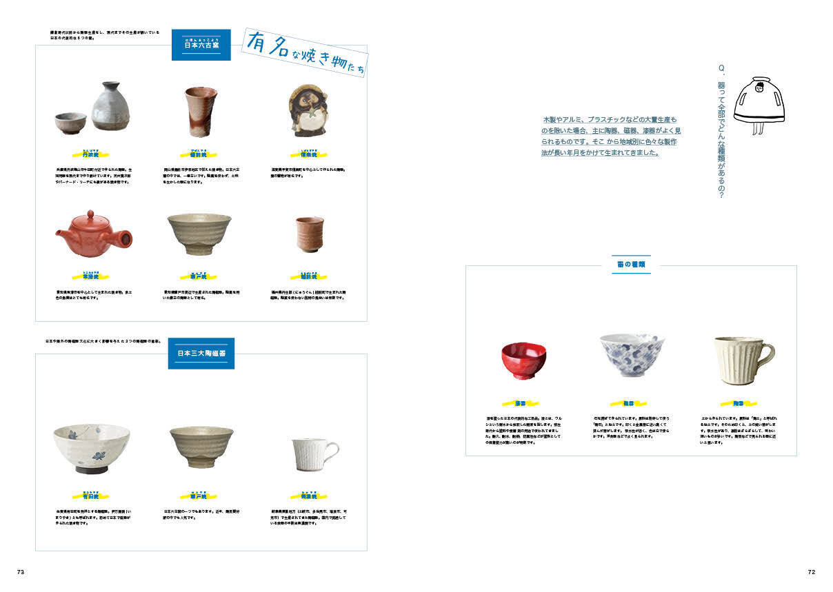 ①器の種類 ②器と地域 ③器と代表的な職人(陶芸家)