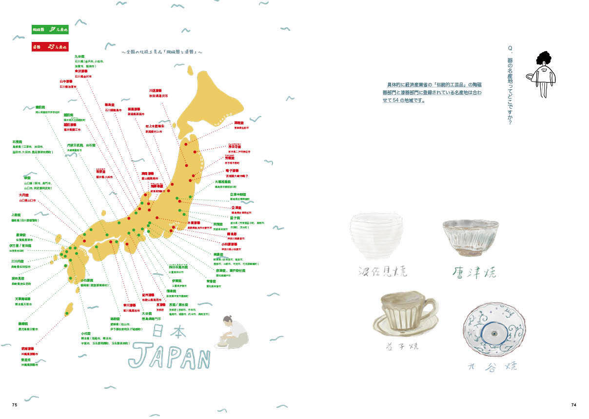 経済産業省の「伝統的工芸品」の陶磁器部門と漆器部門に登録されている名産地54をマップで紹介しています。