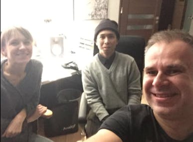 ↑ポーランドのグラフィックデザイナー「Janusz Jurek(右)」のお家にお邪魔して取材した時の一枚