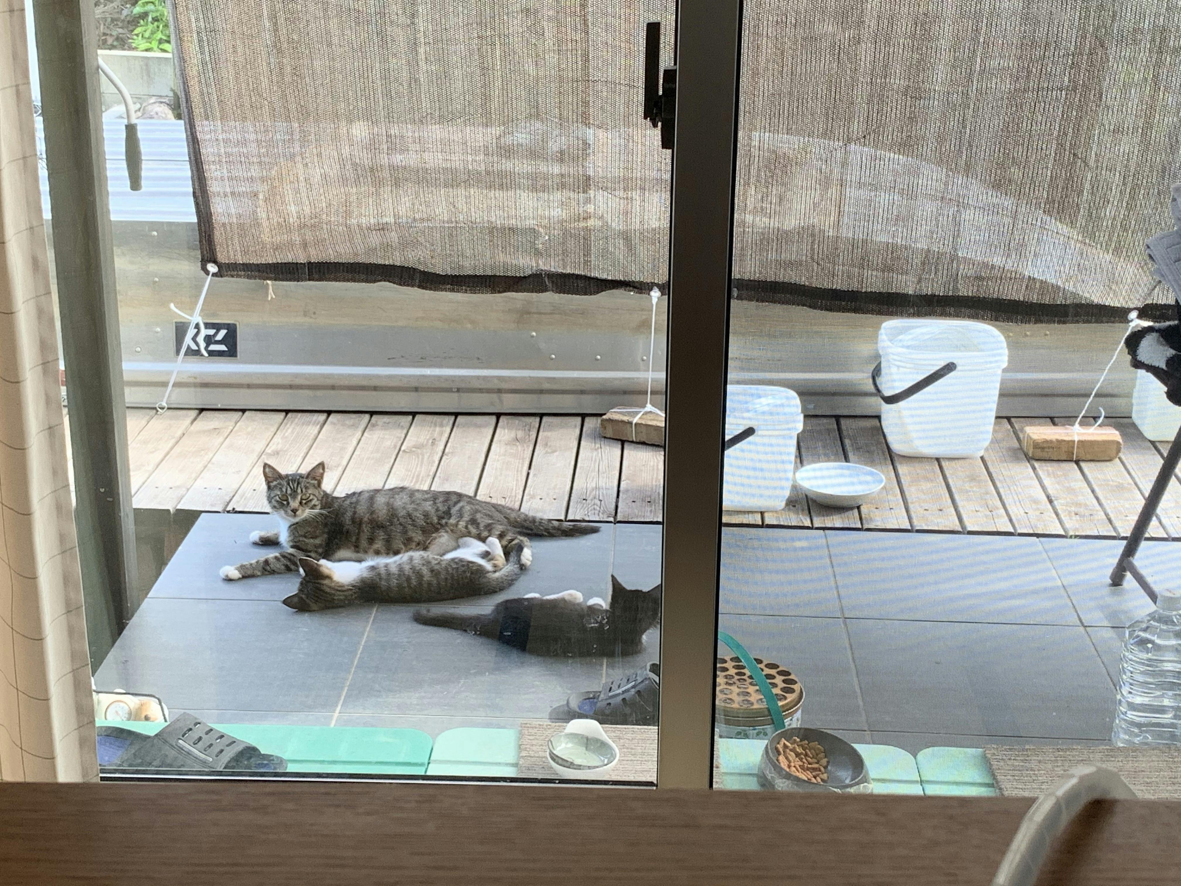 約3ヶ月前、庭を見ると生後約3週間の3匹の子猫を連れた母猫が、何か私に助けを求めるように、こちらをジッと見つめていました。
