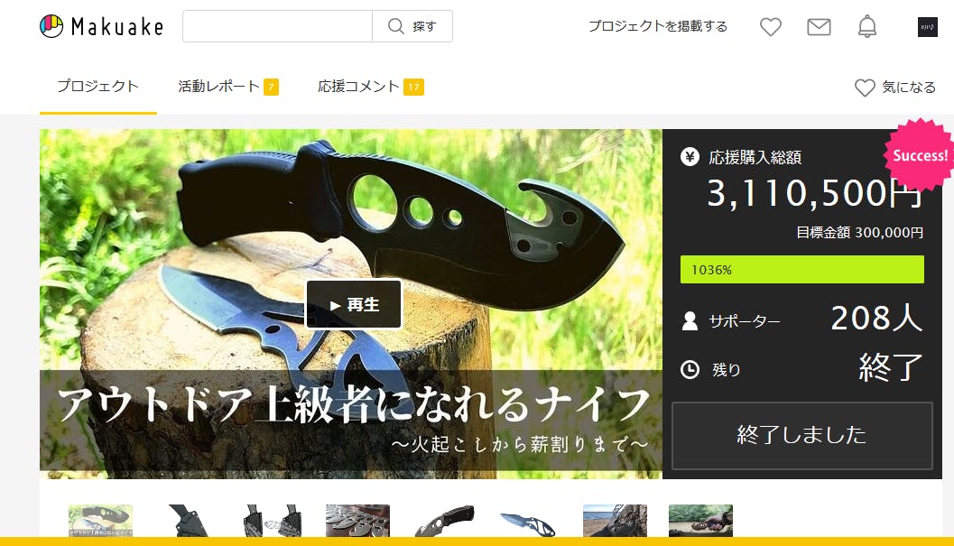 2020年6月に「Makuake」にて3110500円の支援を集めて