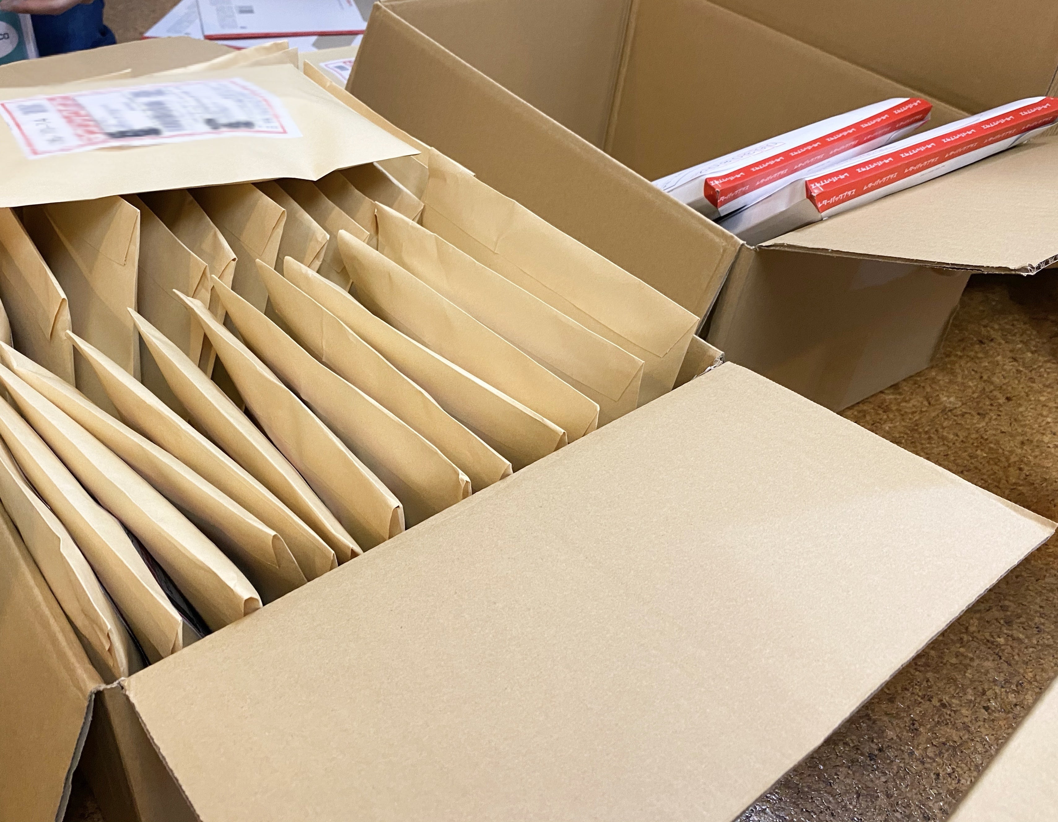 手作業で詰めておりますので、ご支援者の皆さま全員の手元に届くまで、もう少しかかります……!