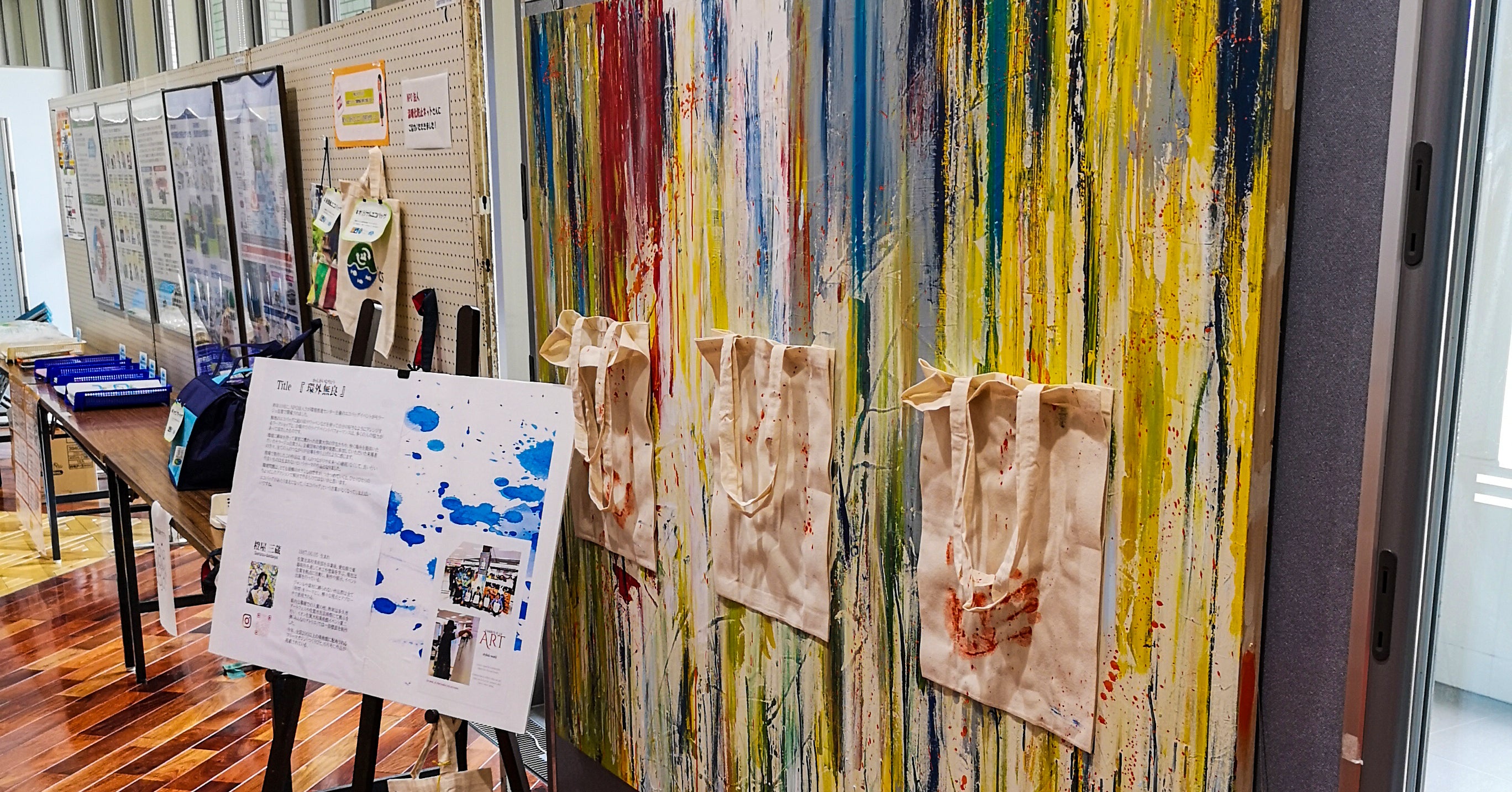市庁舎で開催されたエコバッグ推進イベントでの作品展示