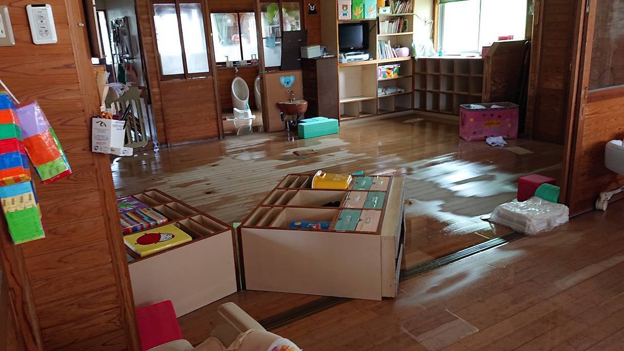 私たちが実際にヒアリングさせていただいた施設の中では、女性の腰上あたり(床上50㎝以上)まで浸水し、ほとんどの物が使用できなくなった保育施設もありました。現在は代替施設で保育を行っている状態ですが、2か月経った今でも、当たり前だった本園舎での生活ができていないのが状況です。