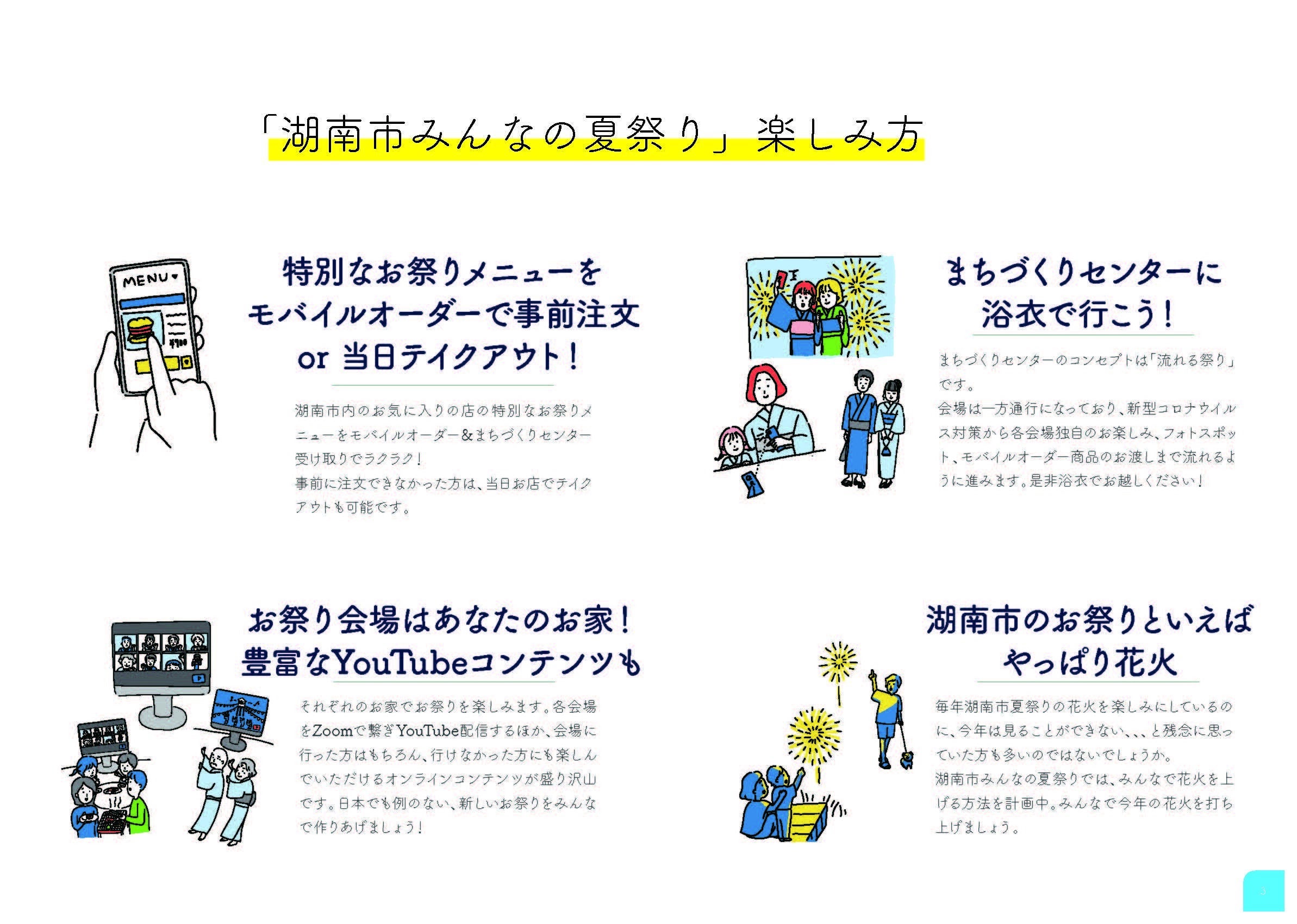 湖南市に関わる人みんなが「お家で夏祭りを楽しむ日」になるよう、夏祭り気分を味わっていただく工夫が盛りだくさんです。