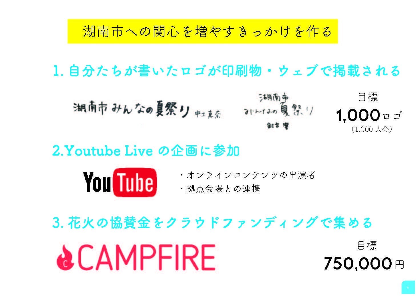 達成できた際には、若い方からご高齢の方、また日本人から外国人まで多くの皆さんに楽しんでいただける内容を発信したいと思います。 そして、コロナ下でもみんなで頑張って支え合っている地元に少しでも元気を与えられるよう、花火を生中継いたします!
