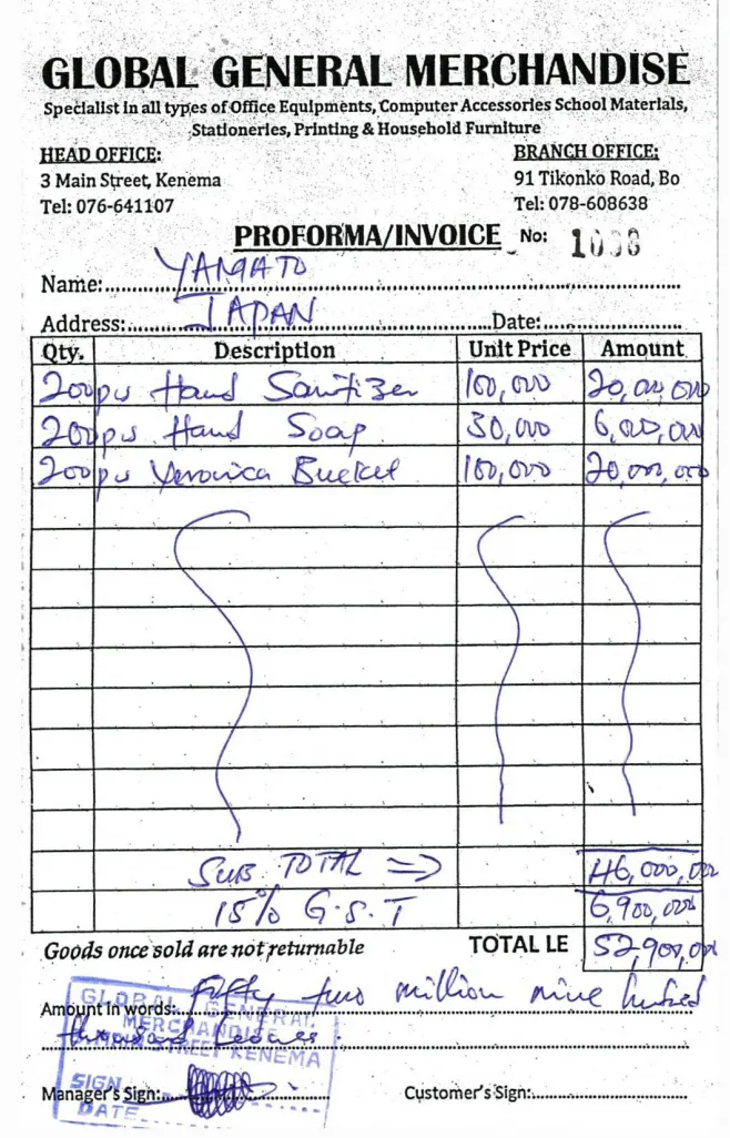 「どうも、こんにちは。私は、バイマ村村長のPeter J Koromawa です。新型コロナウイルスの感染が始まって以降、たくさんの人が死にましたが、私たちにはそれに対処する方法もなく、海外の人達の支援に頼らざるを得ない状況です。なぜなら、私たちの村は、政府からの援助が一つもないからです。ですから、例えどんな支援であっても、感謝。」