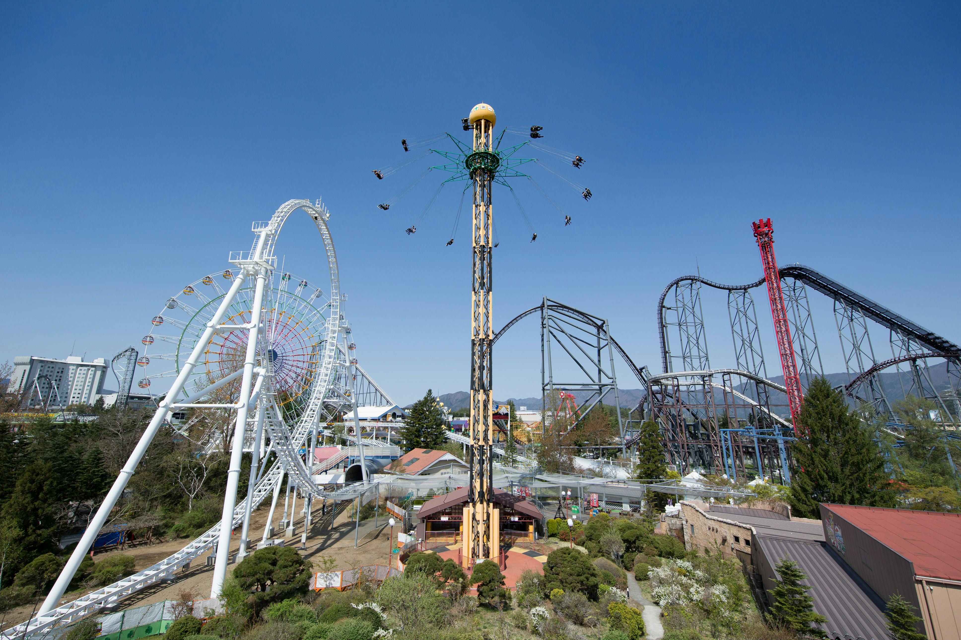 現在園内には40機種近くのアトラクションがあり、ギネス世界記録に認定された“世界一”のアトラクションも多く備え、富士山を眺めながら多彩な遊戯施設を楽しむことができます。