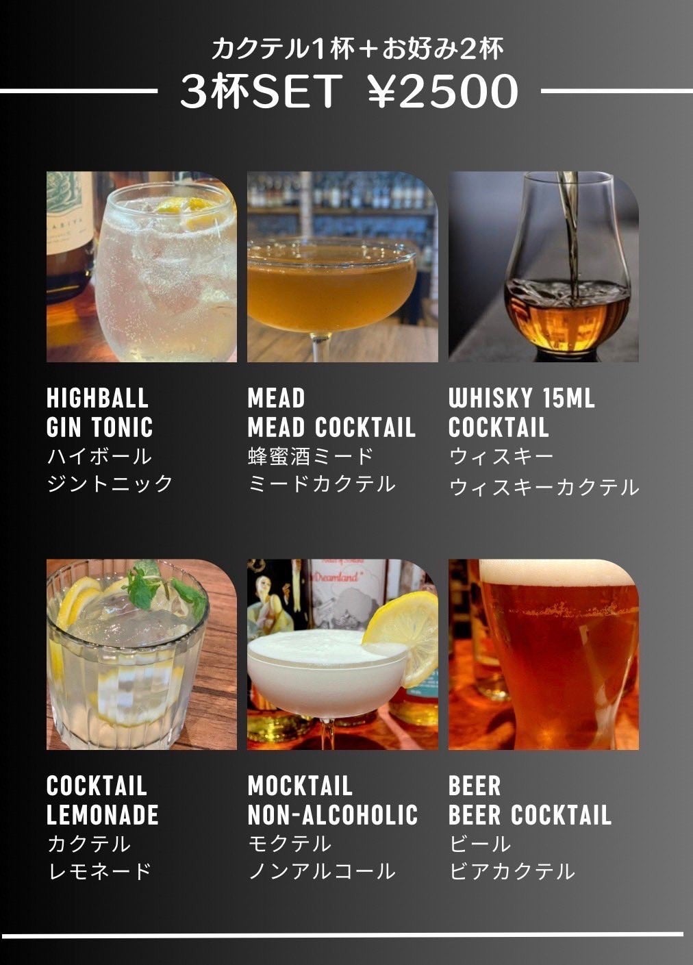 ミードカクテルがなんと24種類♪♪♪ノーチャージの気楽な雰囲気なので、ぜひ皆様のお越しをお待ちしております。